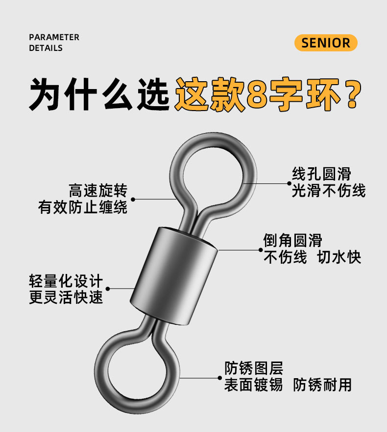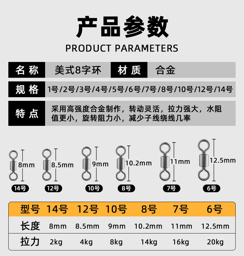 8字環八字回転リング釣り小部品コネクタ強張力漁具快速釣り用品大全路亜