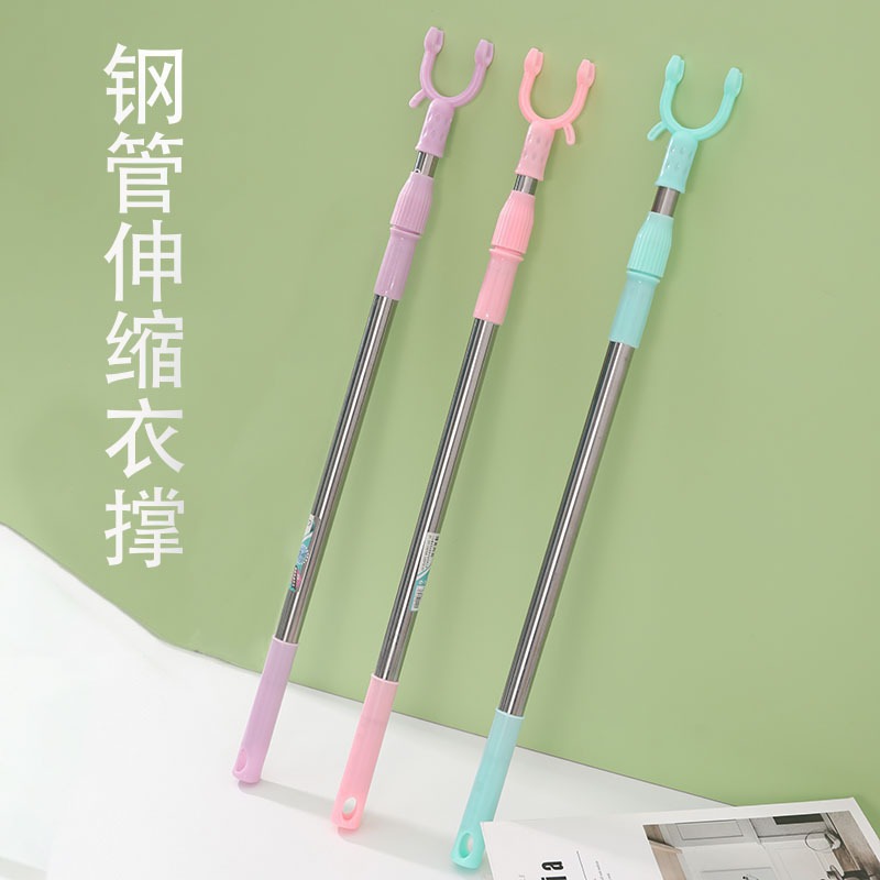 プラスチック伸縮式物干しバーフォーク家庭用携帯型サポートバー純色ベランダ洗濯バー寮の洗濯バー