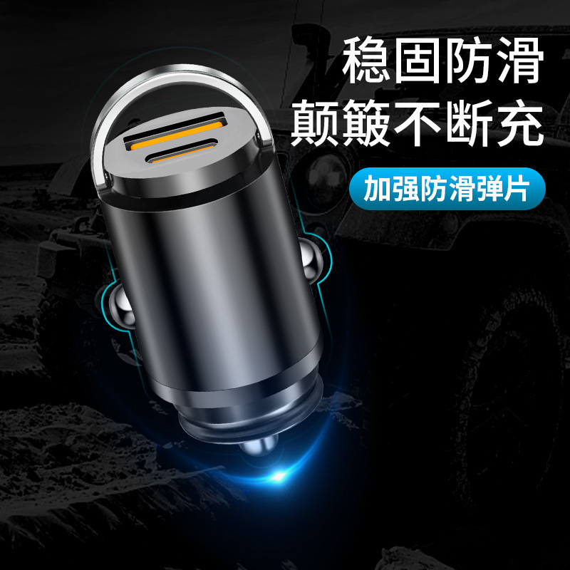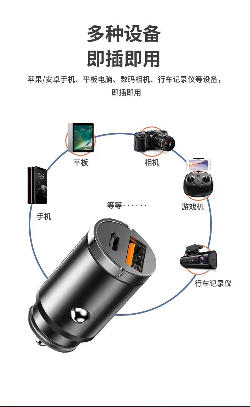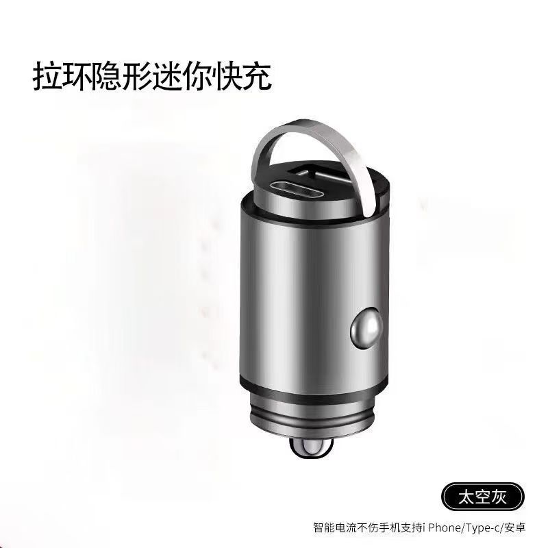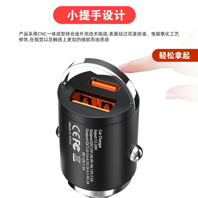 新型超急速充電合金製車載充電器 隠蔽型QC3.0車載充電器 PD 30Wミニ車載充電器 3A車載充電器