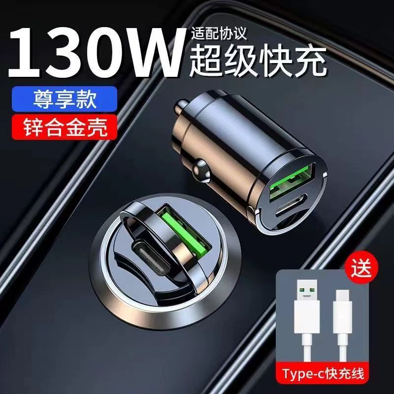 新型車載充電器超高速充電ヘッドtype-cダブル高速充電ハイパワー車充電フラッシュ充電変換器