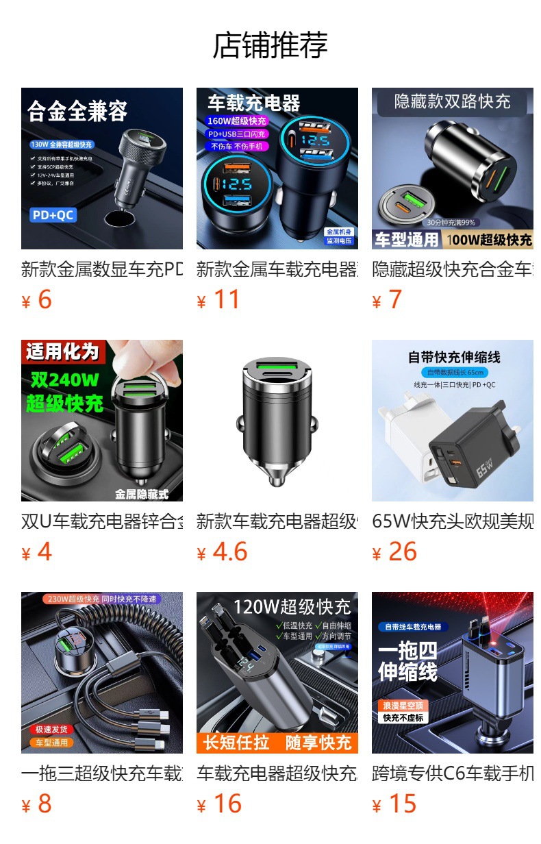 隐形车充车载手机充电器超级快充苹果安卓汽车一拖二点烟器闪充头