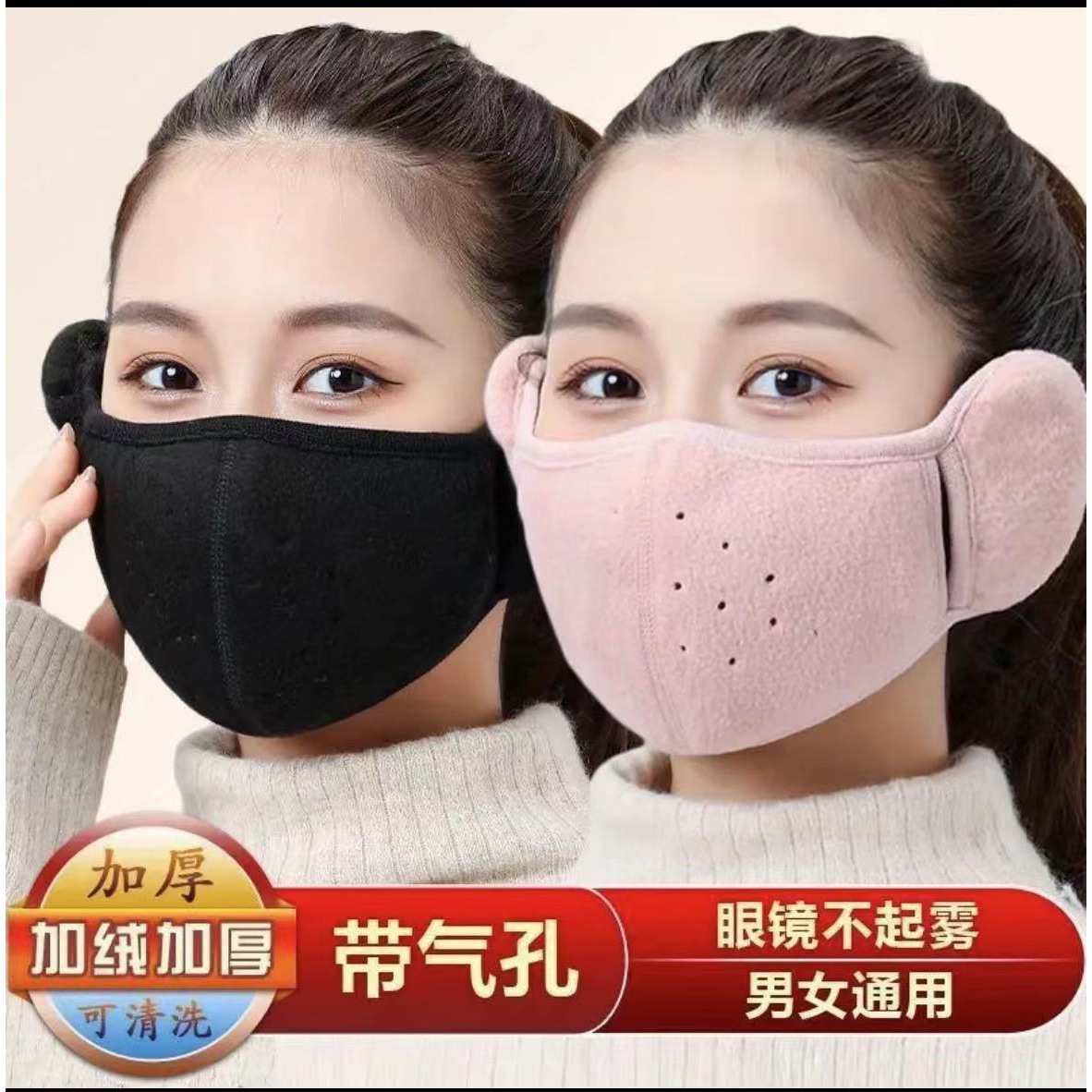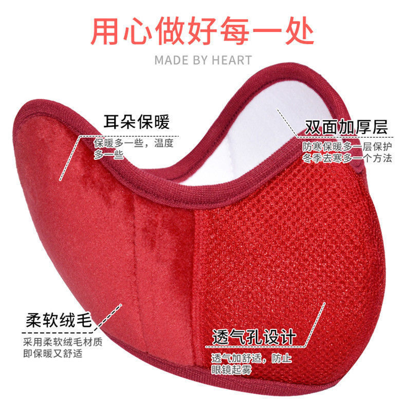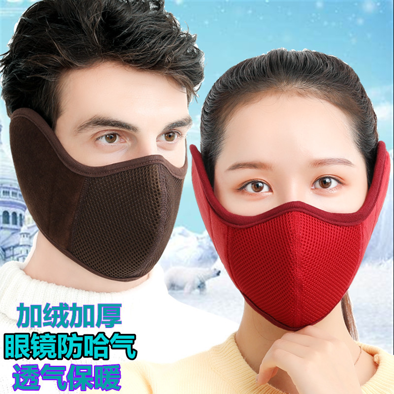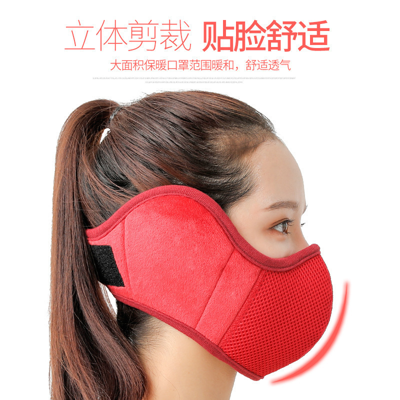 工場直営秋冬フリース防寒通気性立体男女二合一体保温耳保護マスク
