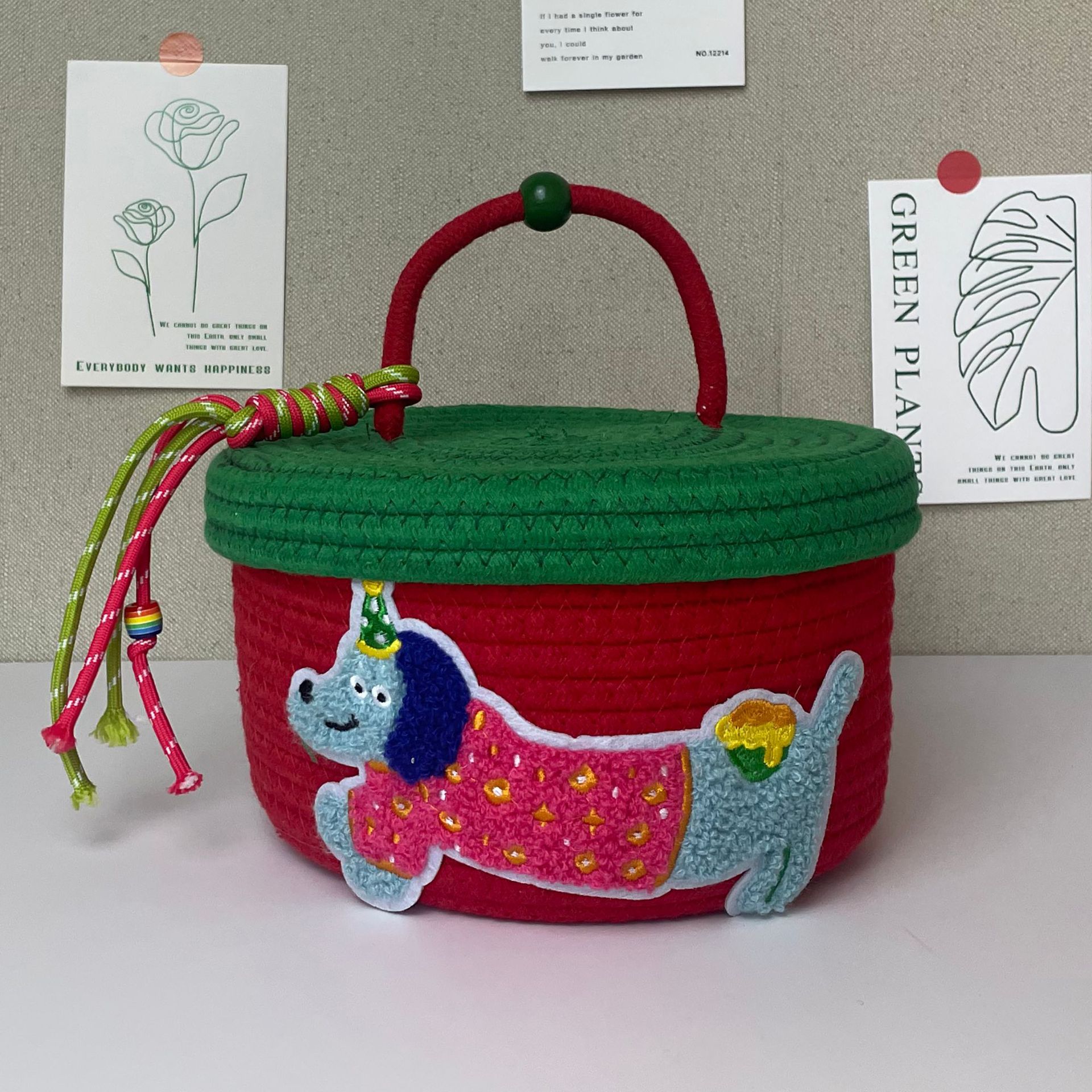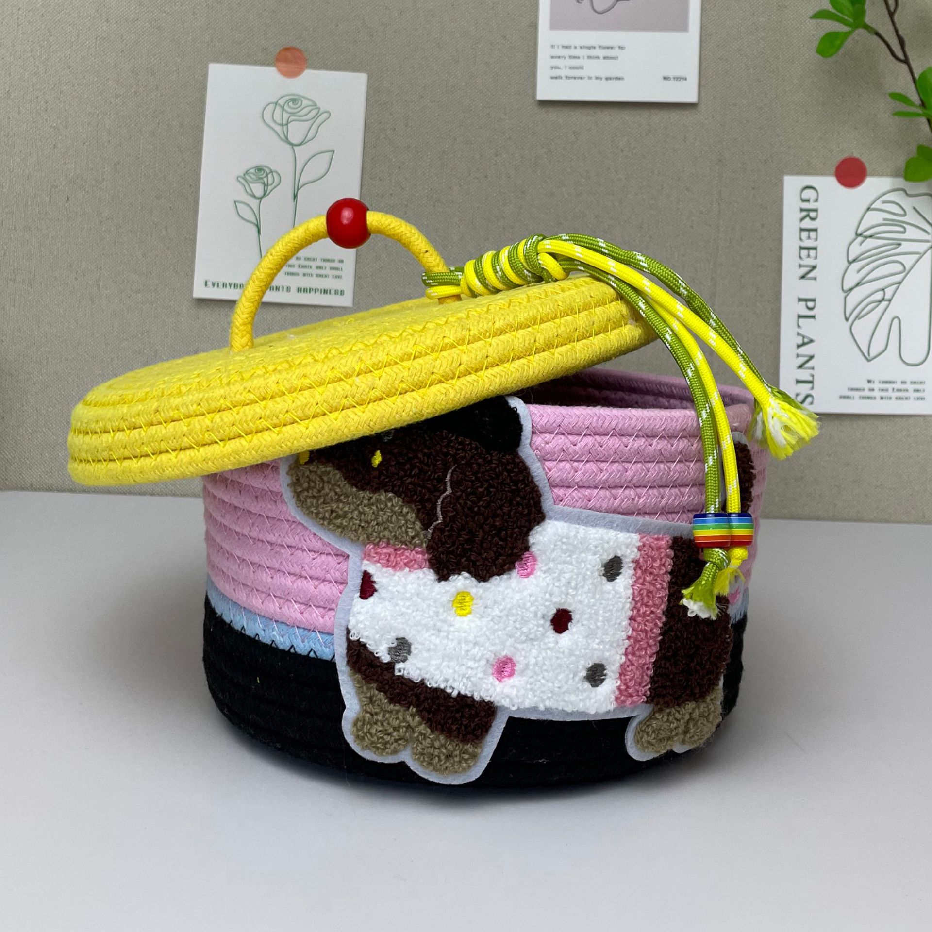 デスクトップ編み収納かごドーパミンかわいいアニメ整理箱化粧品蓋付き寮雑物間食かご