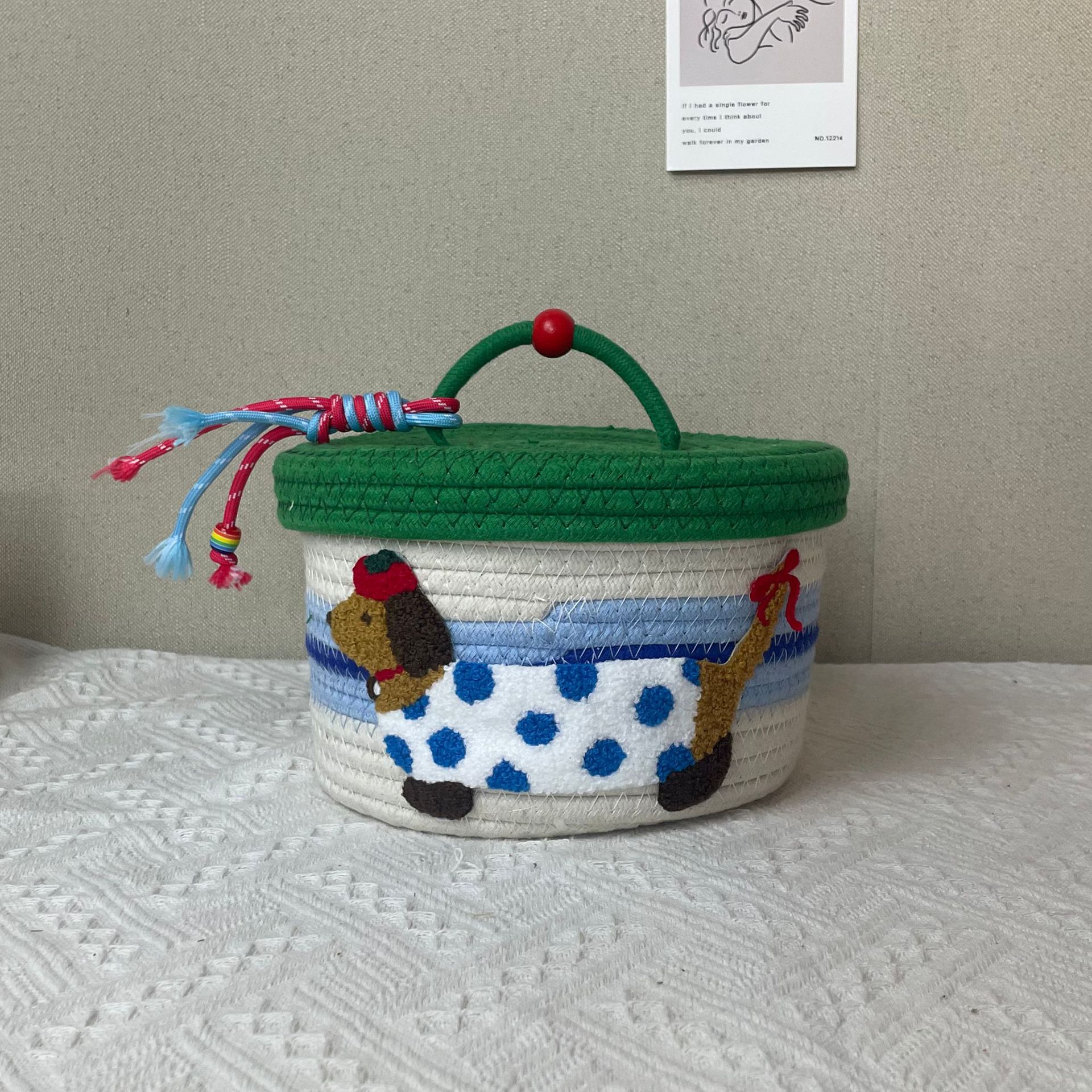 猫リモコン綿ロープ編みデスクトップ収納バスケットキー収納バスケット雑貨整理バスケットラウンドバスケット