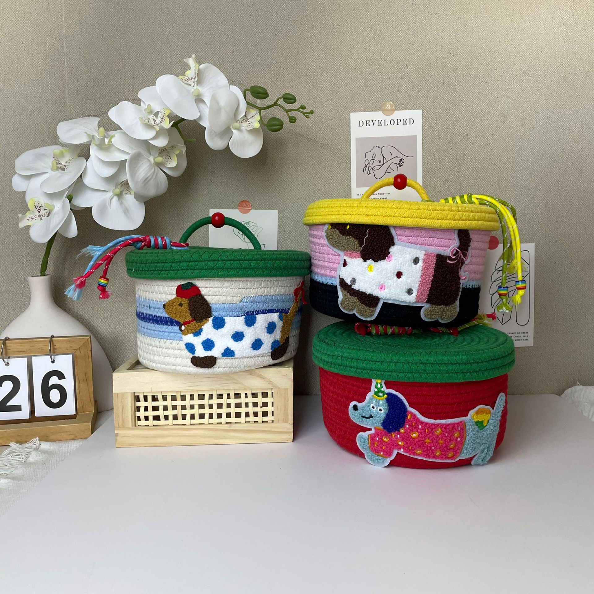 クロスボーダー綿糸編み収納バスケットデスクトップ玩具雑貨収納バスケットキャビネット下着靴下整理収納バスケット