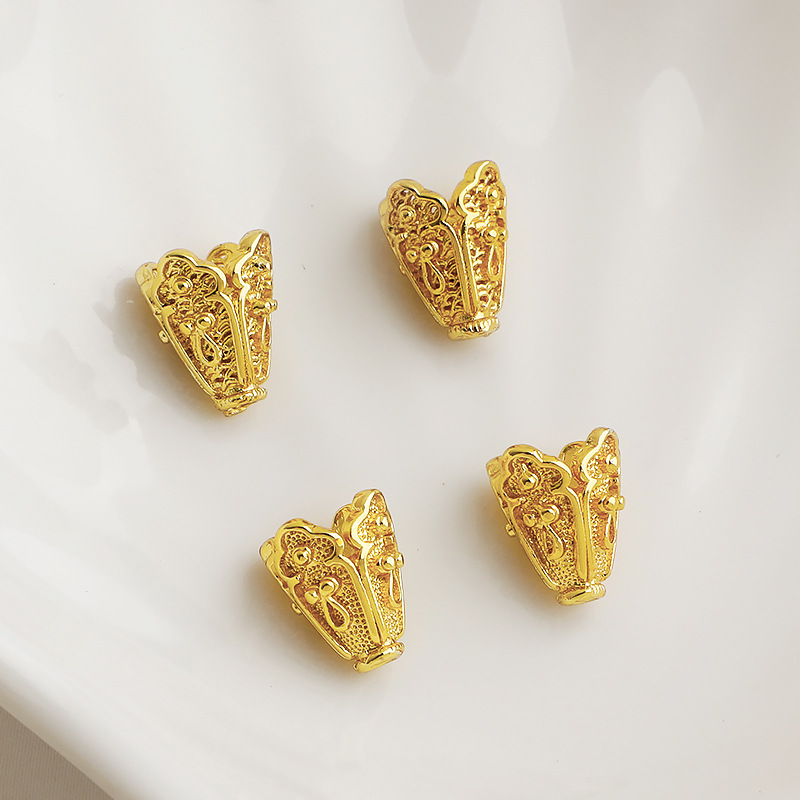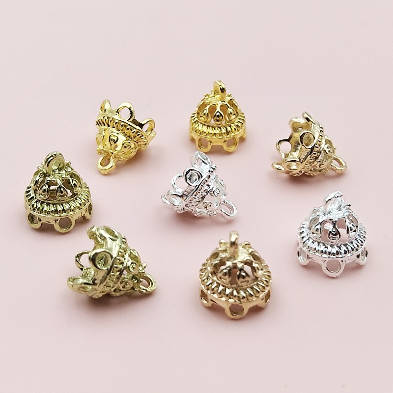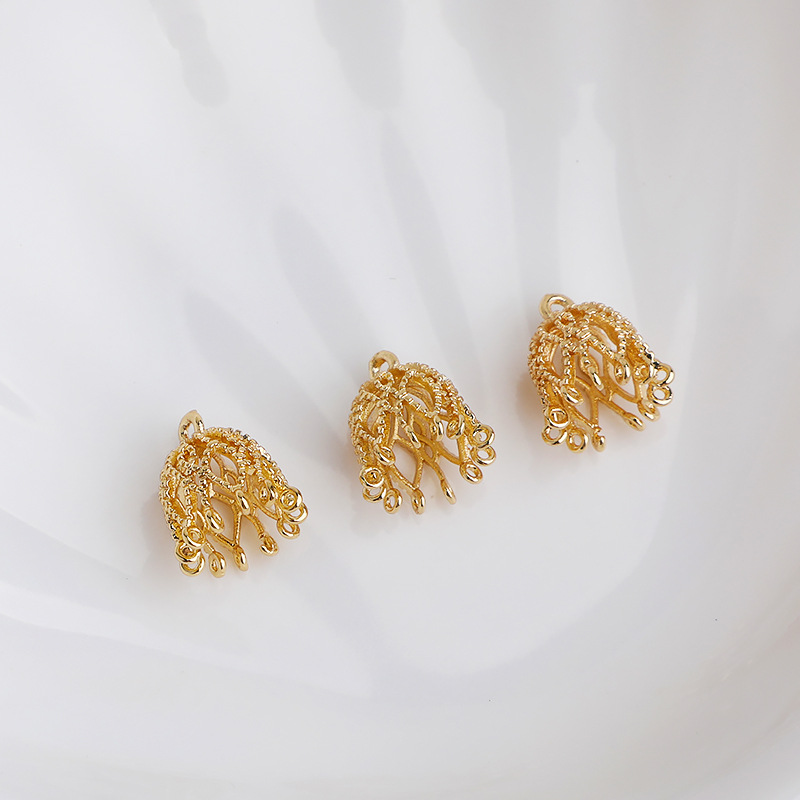 14k包みの金の保色の透かし彫りの王冠のペンダントのフリンジの帽子の復古的な多吊の穴の花の帽子の花托のdiyの耳飾りの部品
