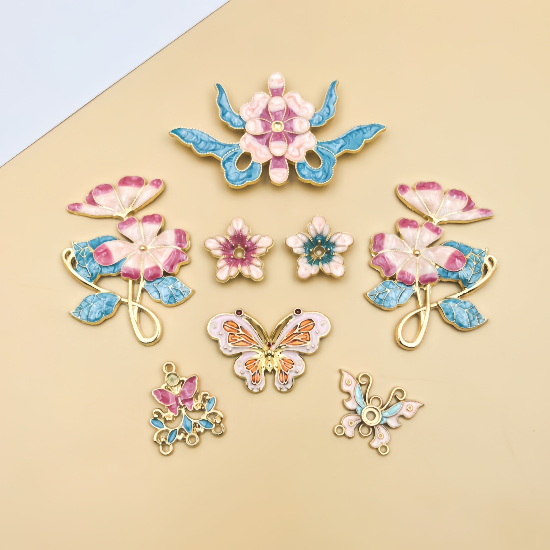 diy新款滴油粉色系合金配件古风发簪步摇流苏挂件手工发饰配件材