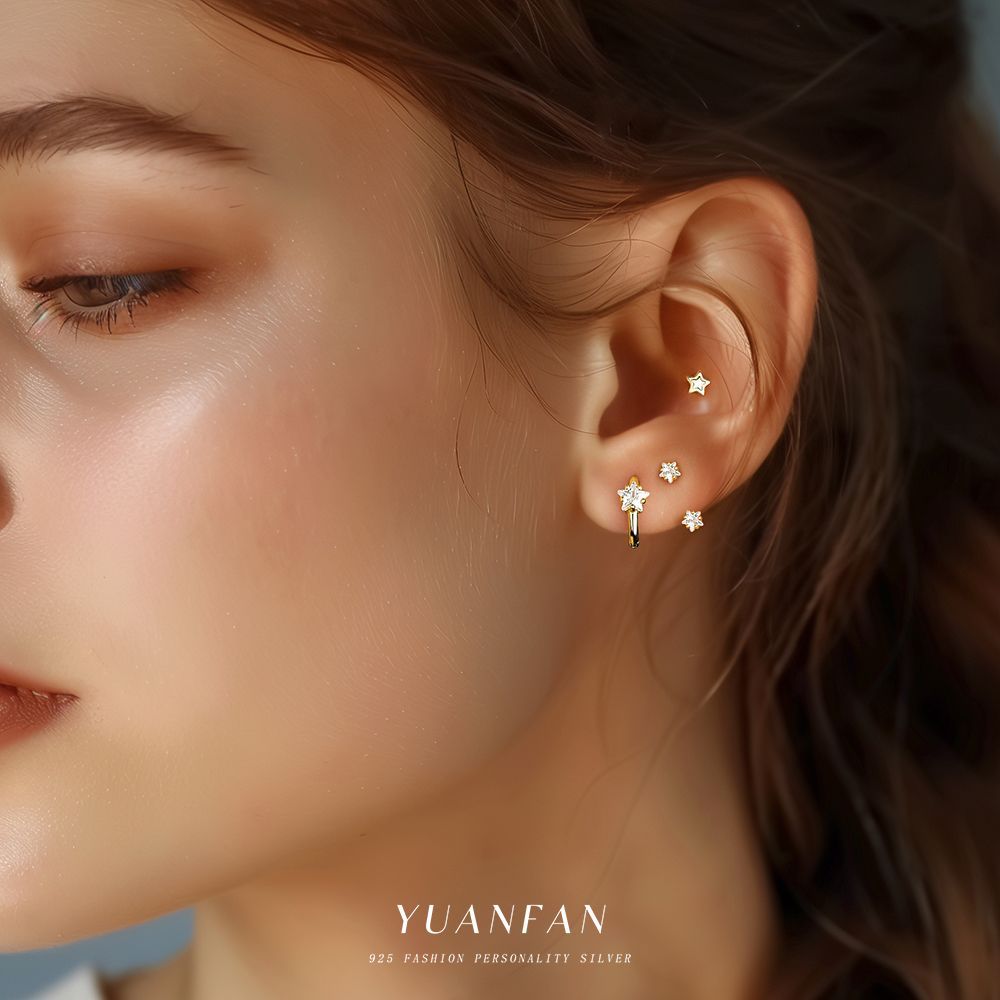 遠梵s925純銀シンプル星芒微嵌め込みピアス女性ファッション洗練された個性デザイン感欧米クロスボーダー耳飾り