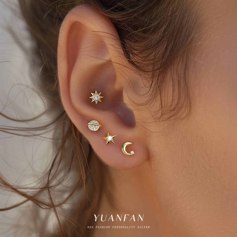 遠梵s925純銀星月太陽星ピアス女性欧米国境を越えた小さなデザイン感のあるイヤリング卸売り