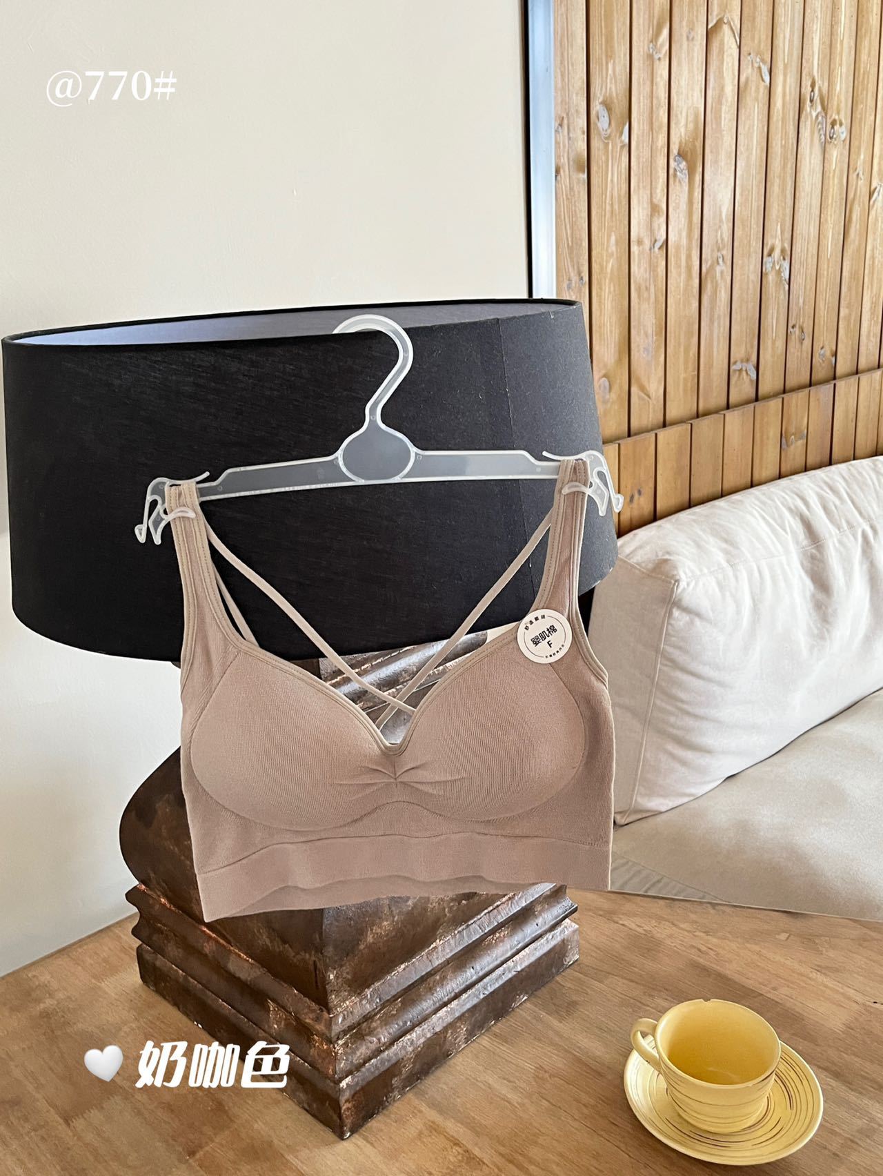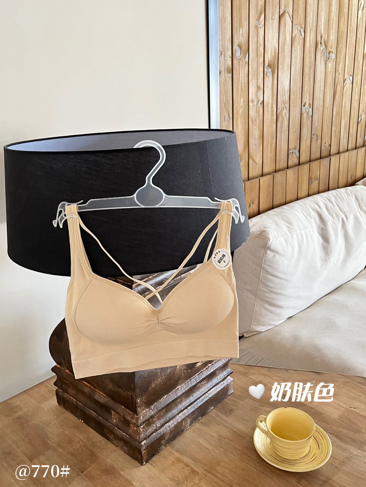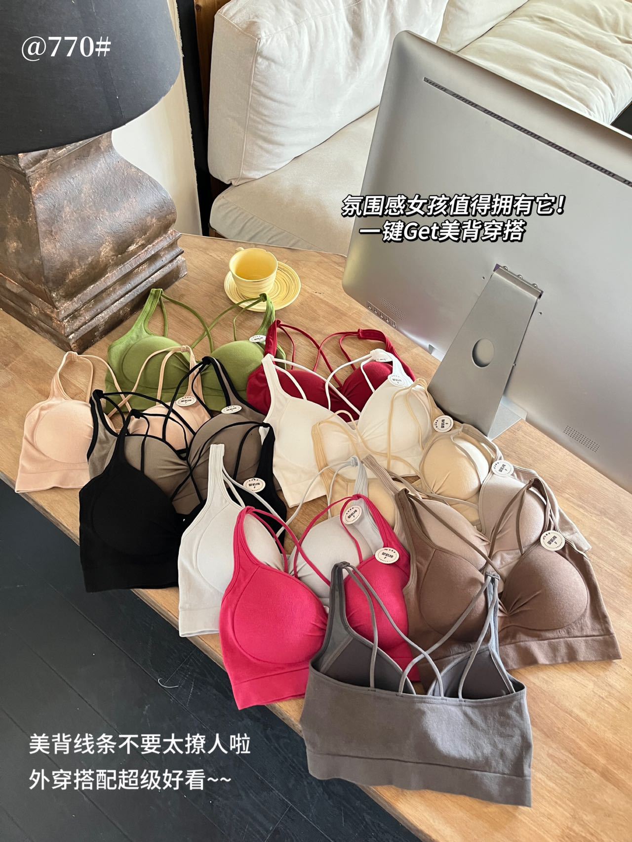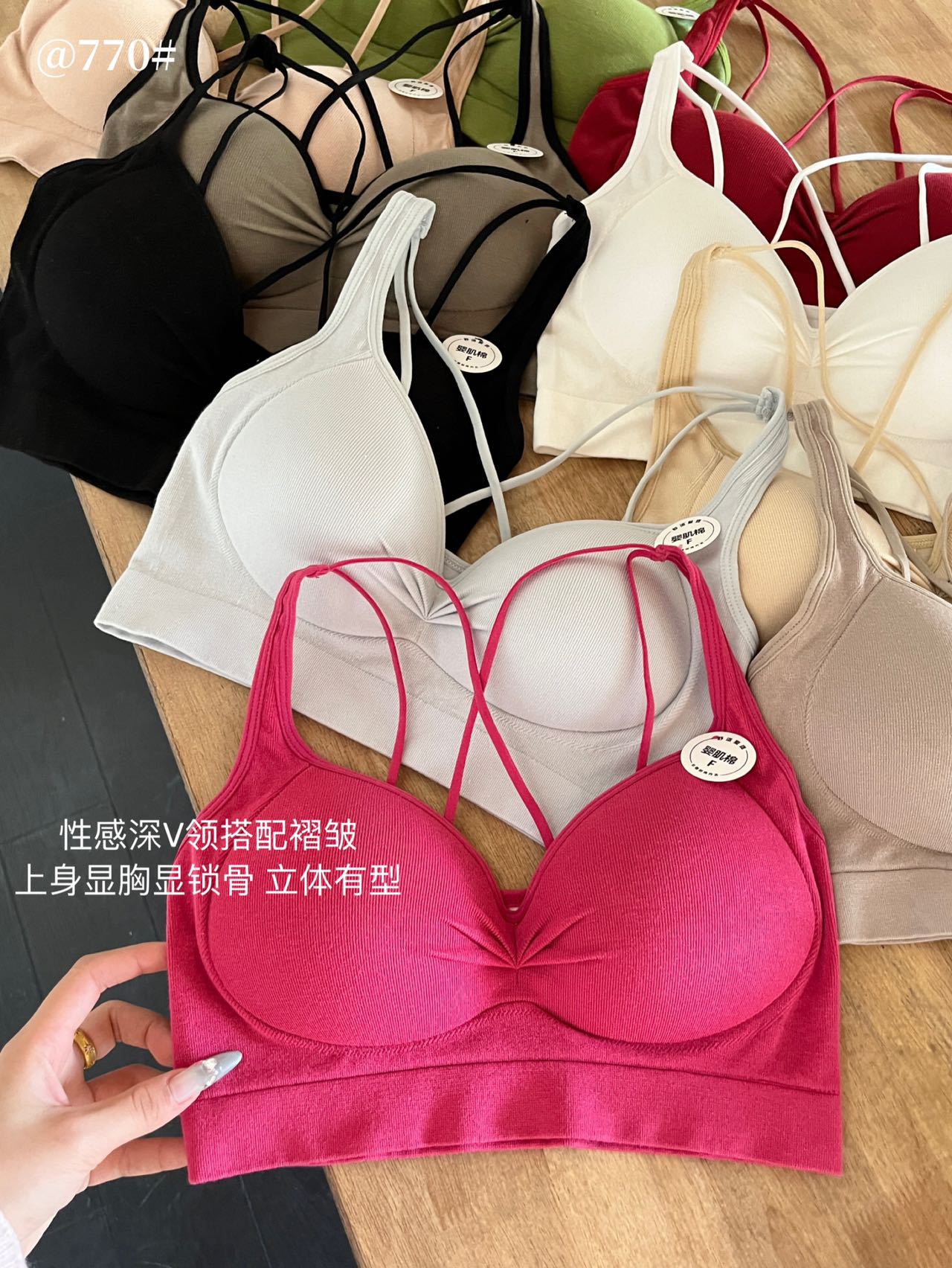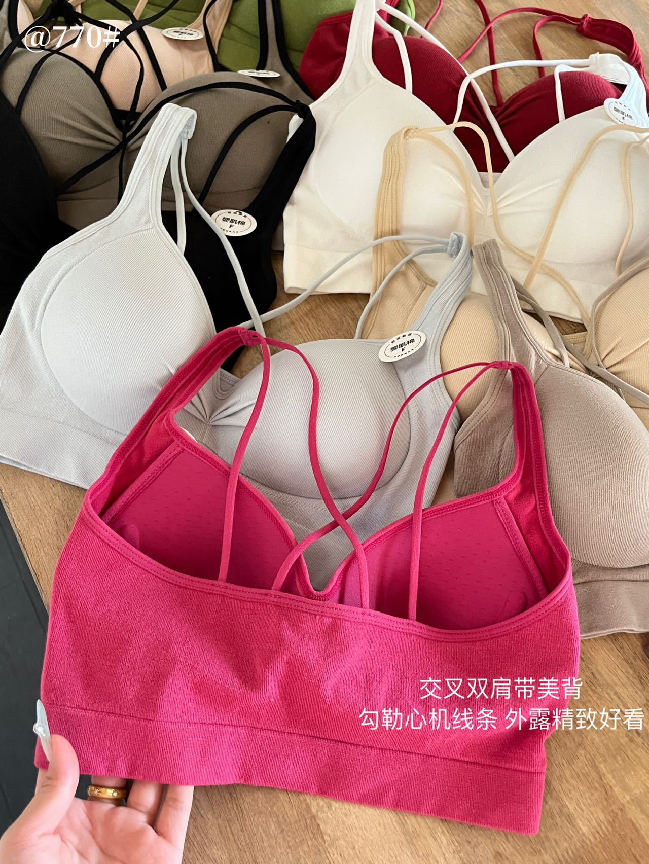 12色系美背下着薄手集结ストラップvネック下着一体固定カップバッククロス美背下着