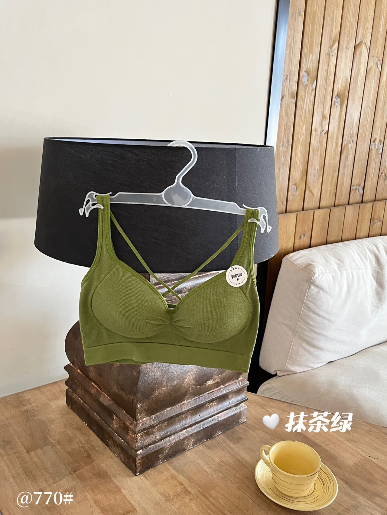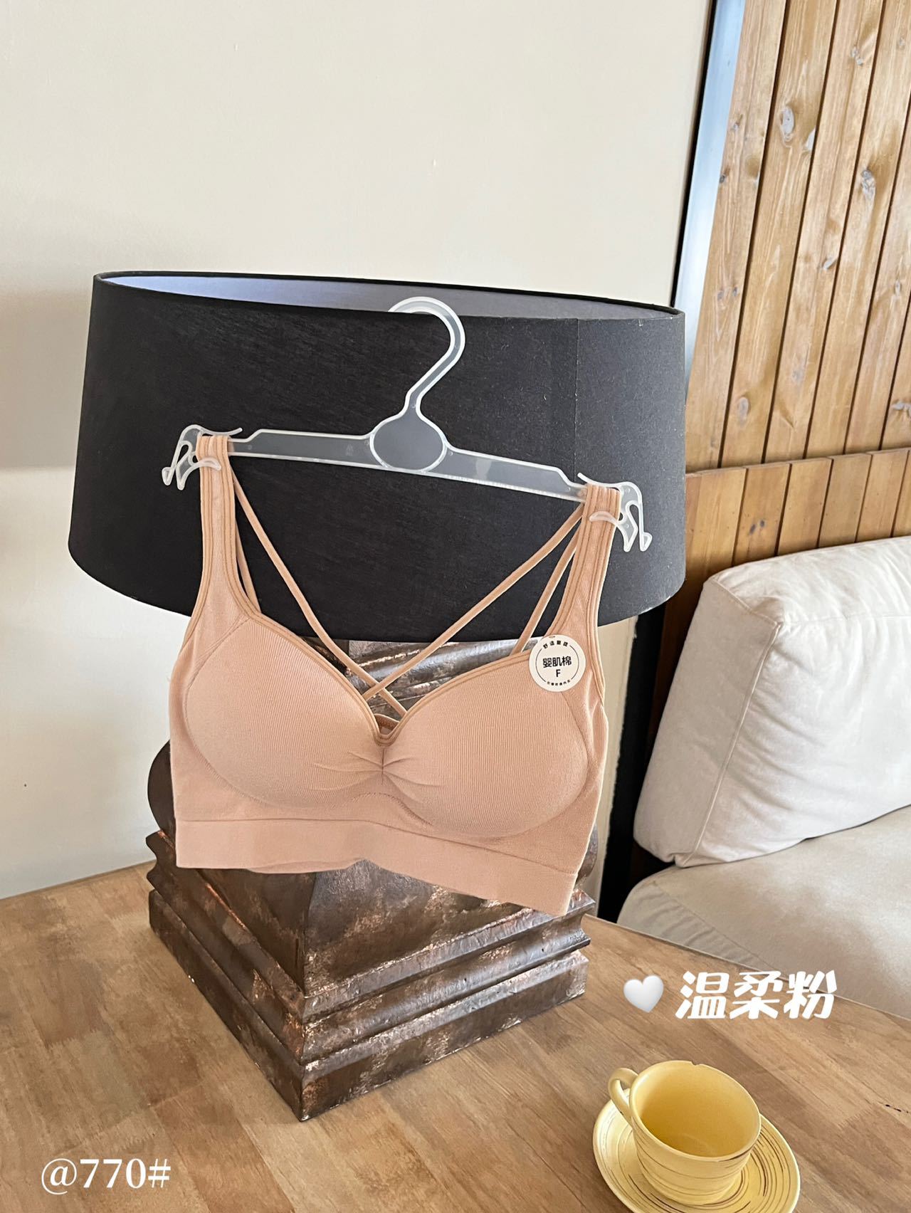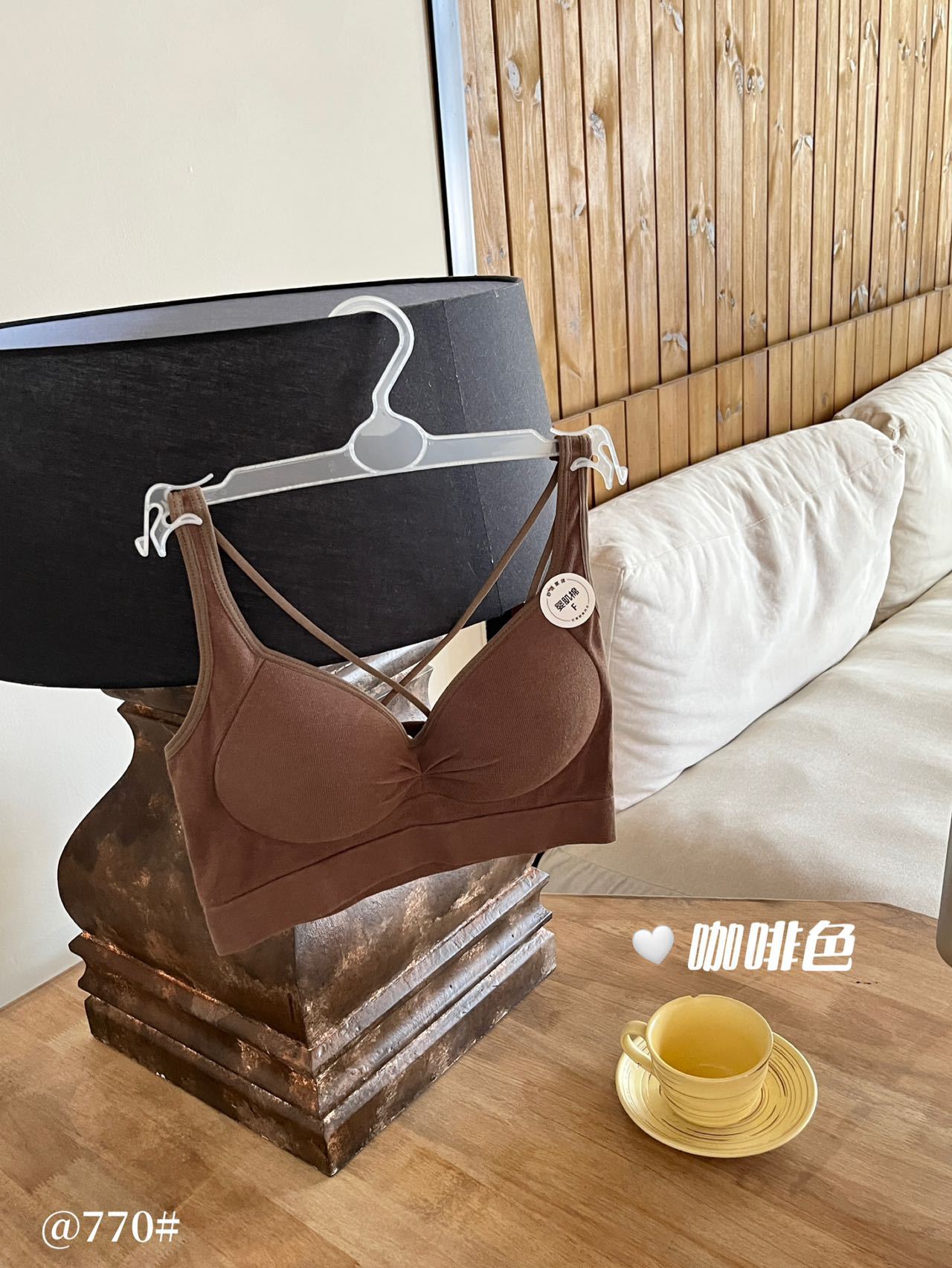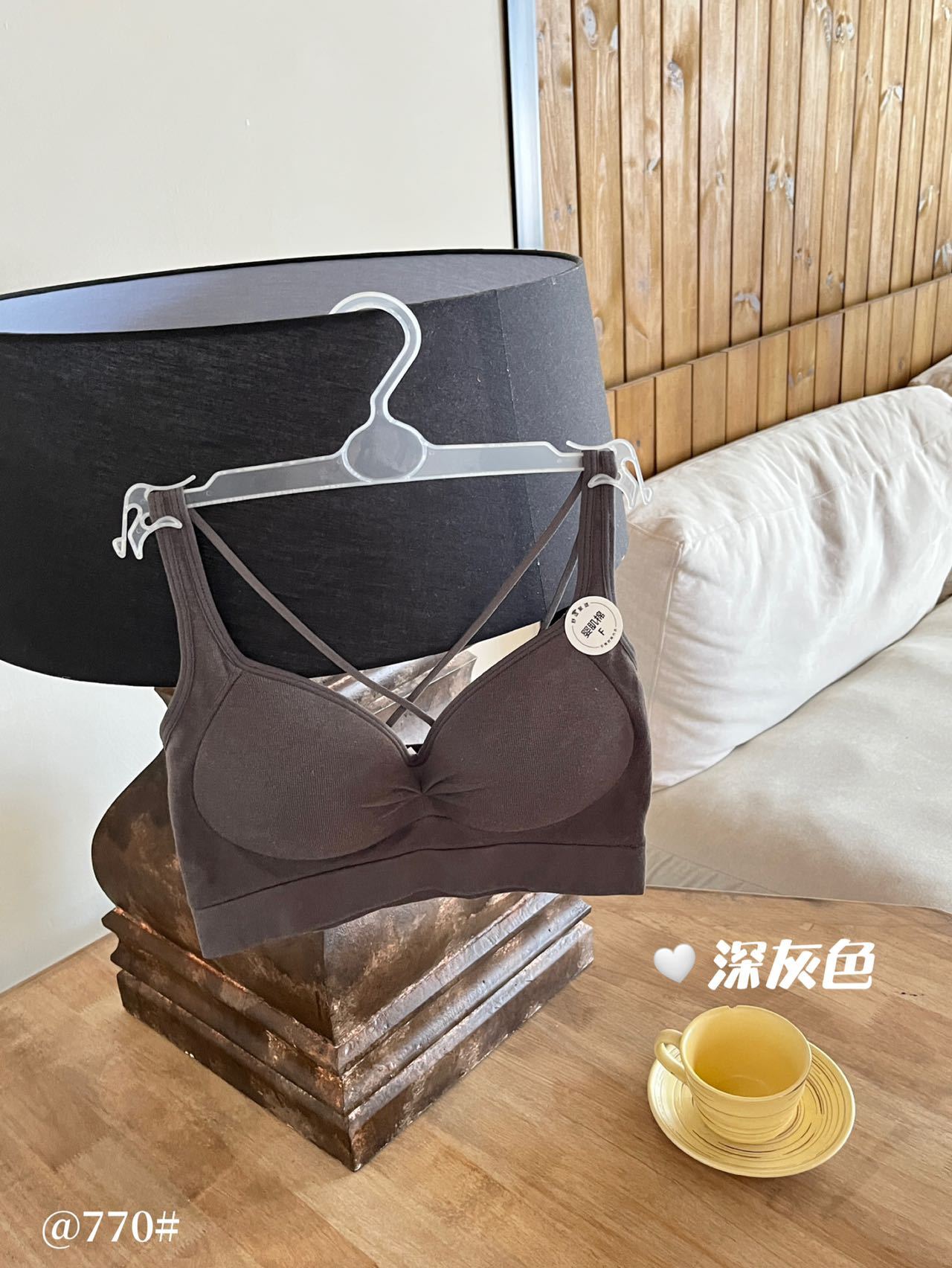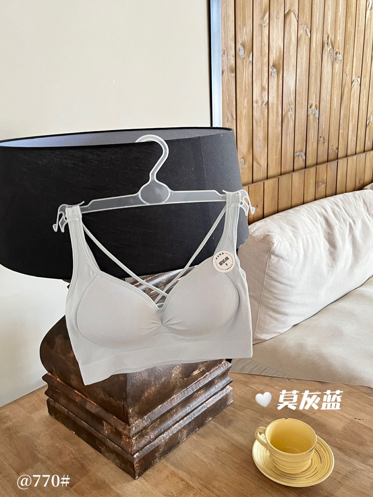 12色系美背下着薄手集结ストラップvネック下着一体固定カップバッククロス美背下着