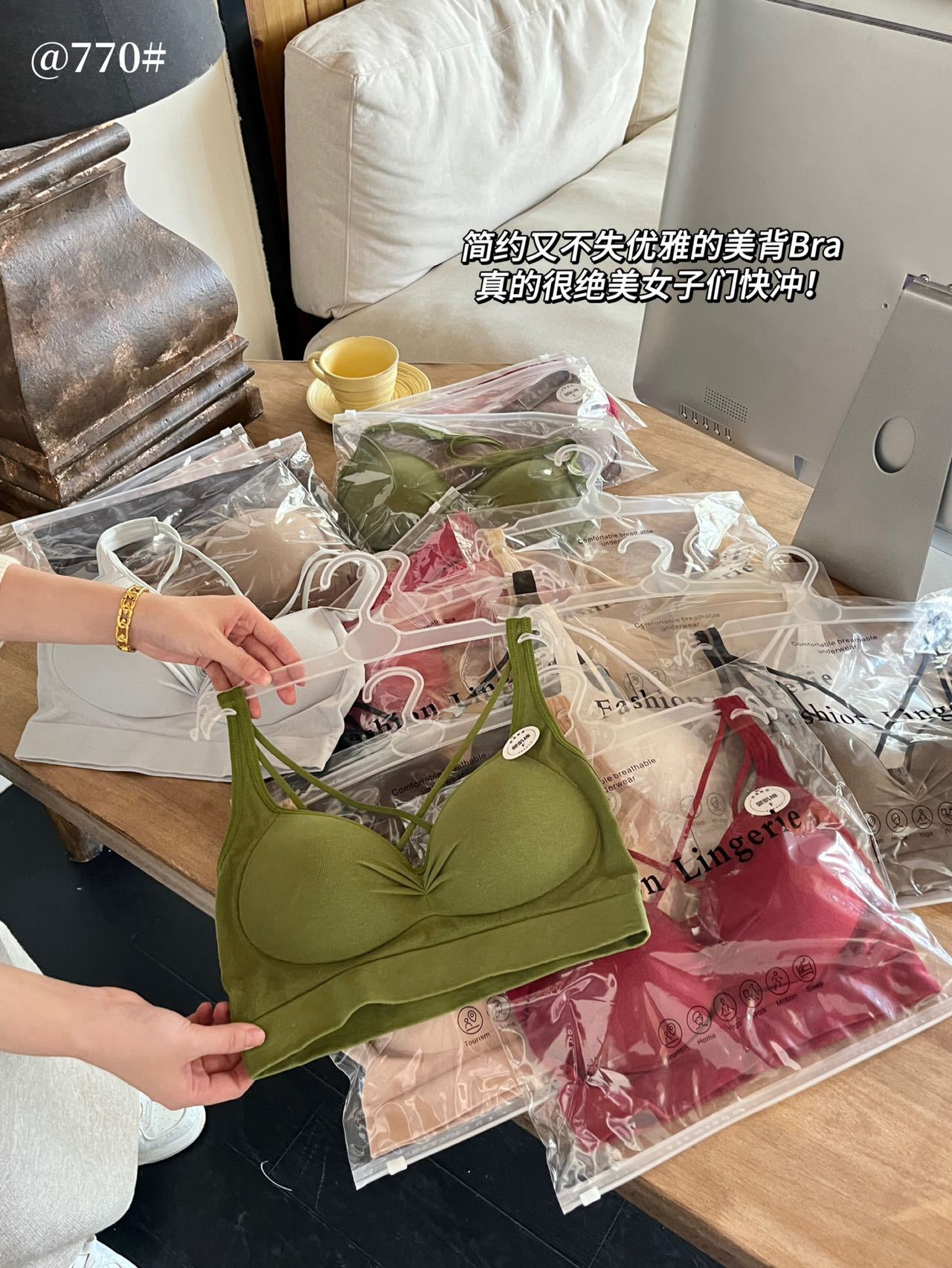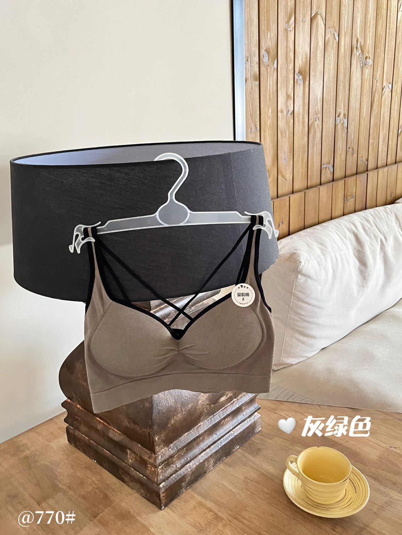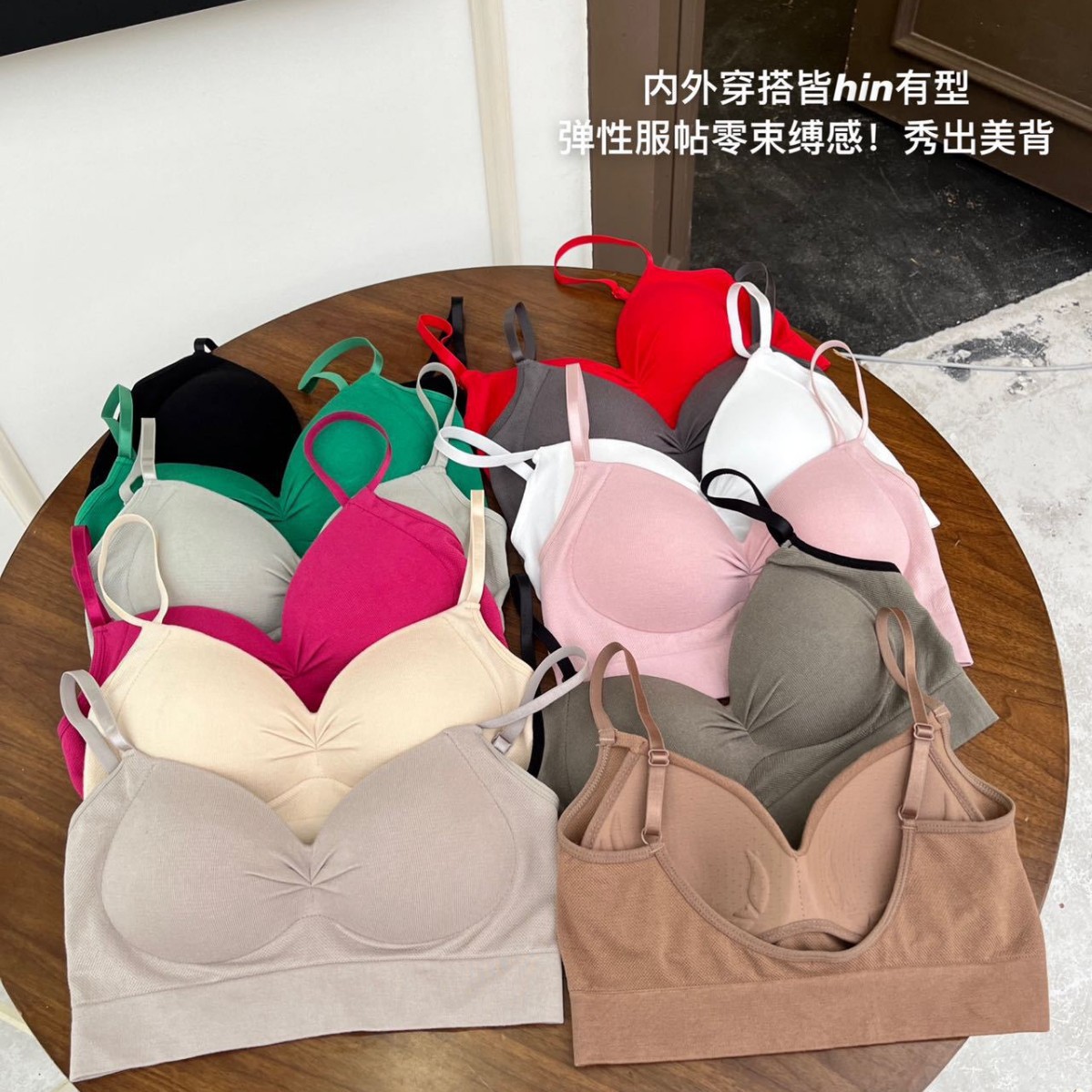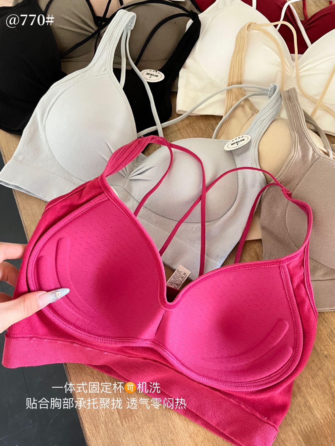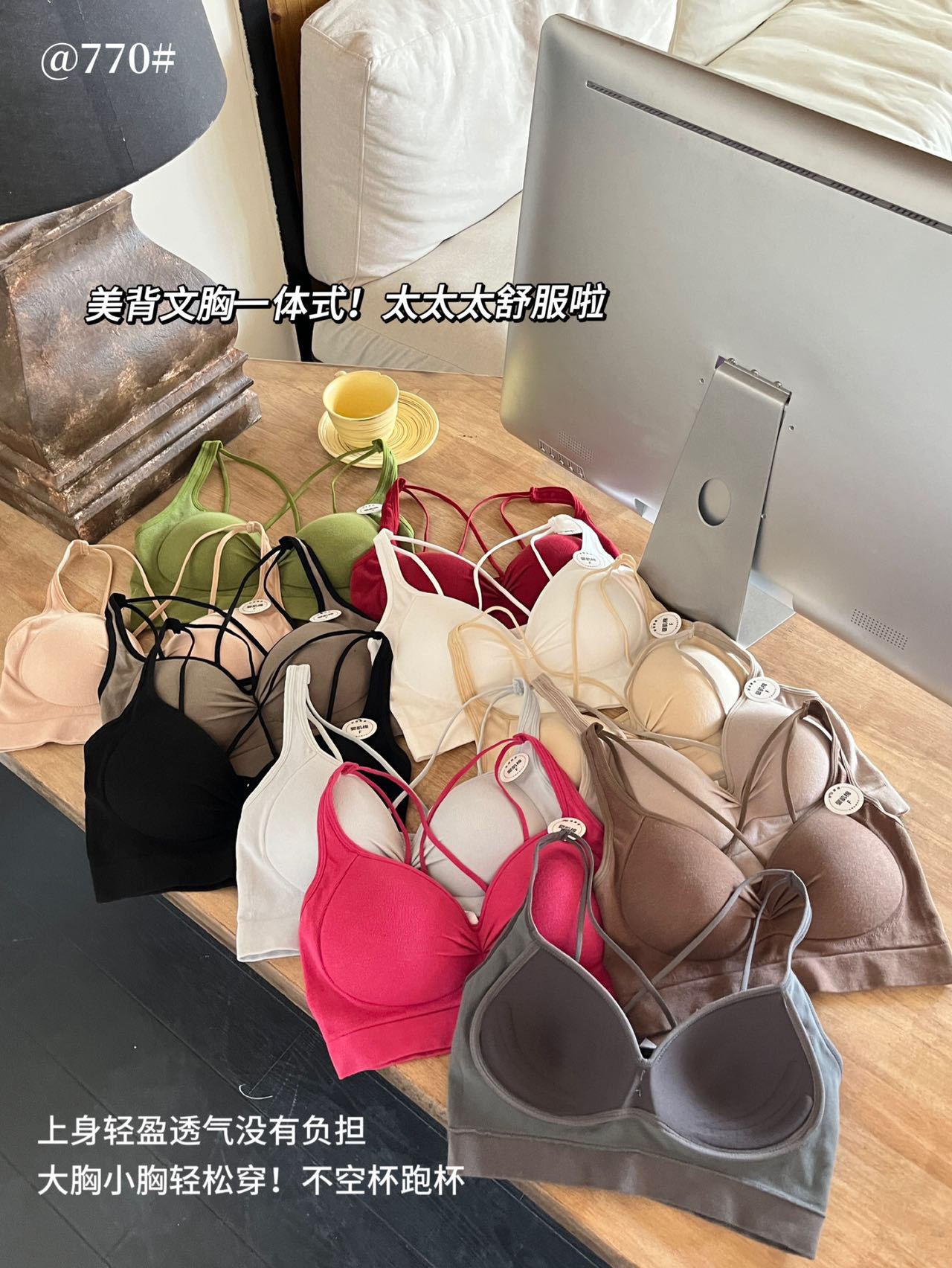 12色系美背下着薄手集结ストラップvネック下着一体固定カップバッククロス美背下着