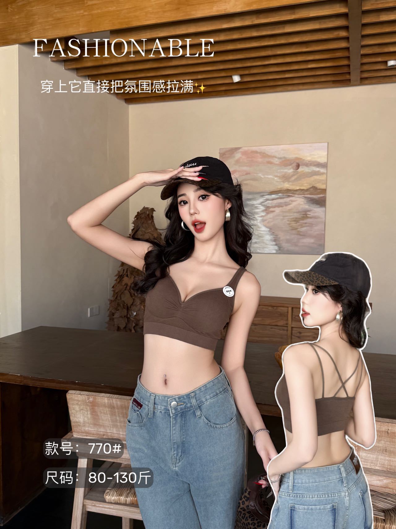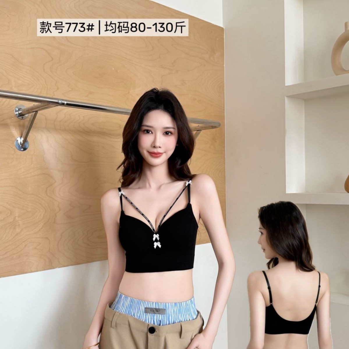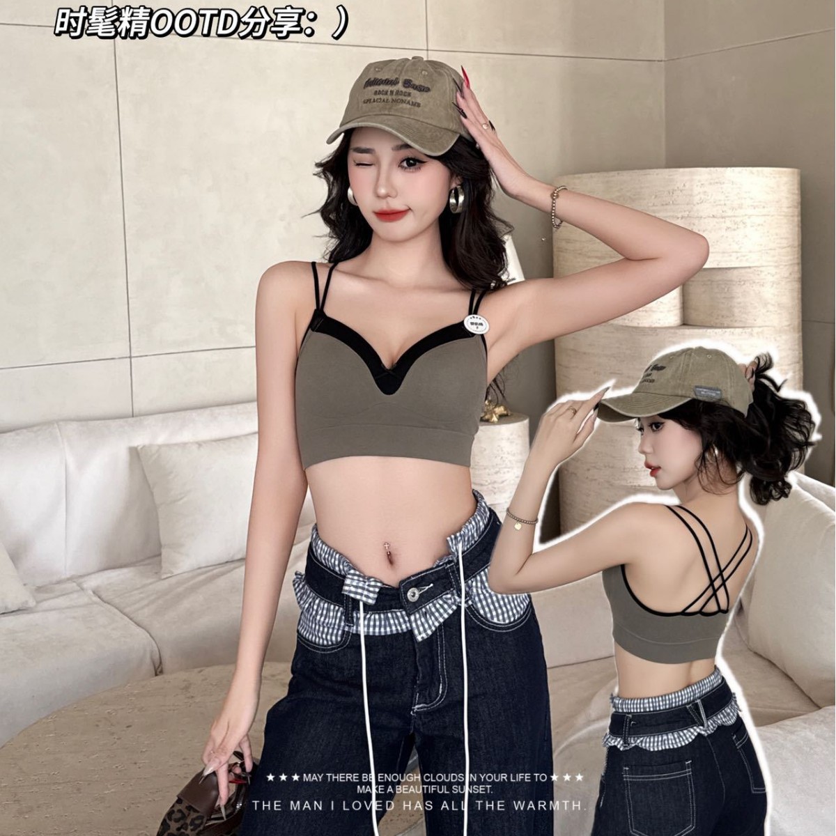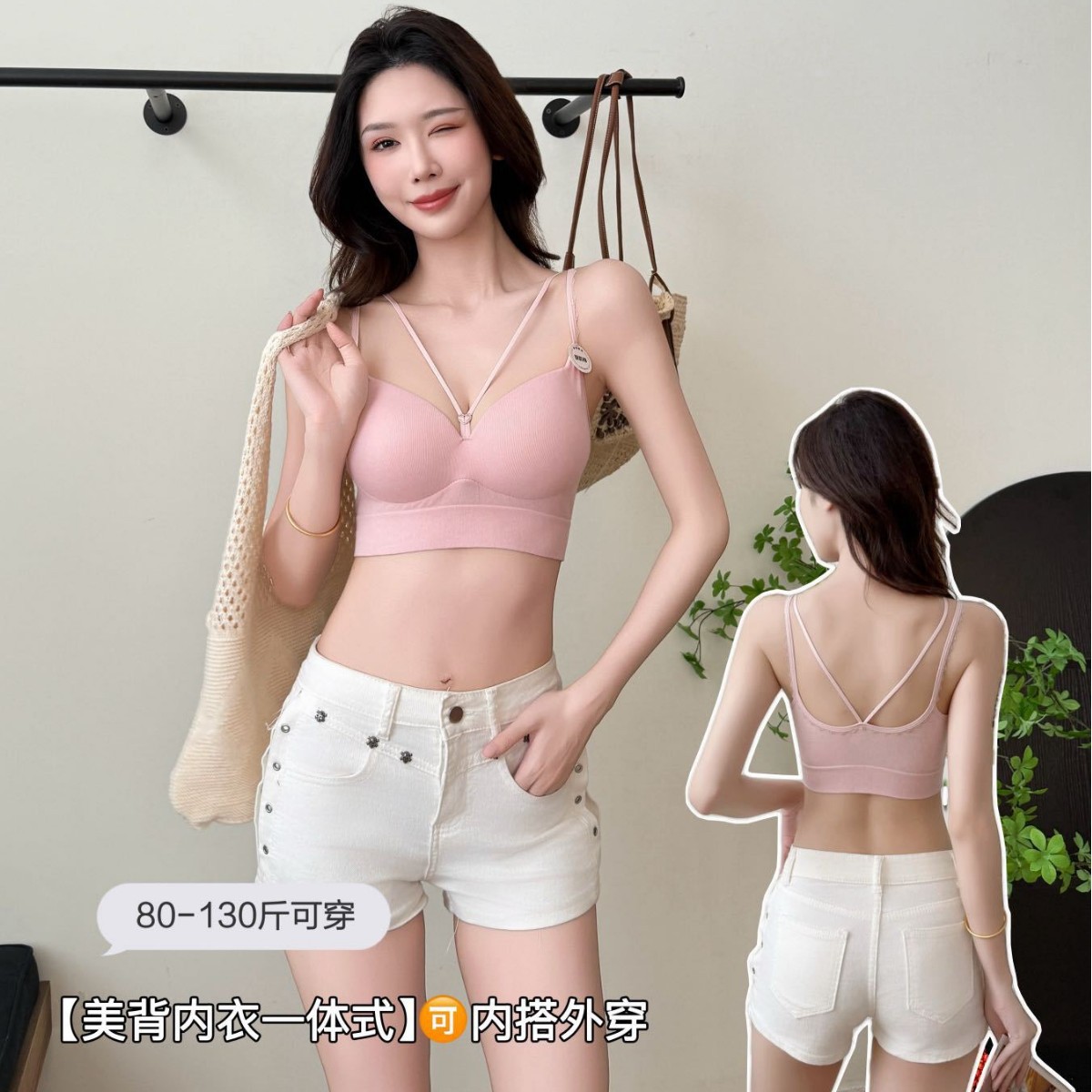 778#纯欲木耳边深V女交叉一体式美背固定杯聚拢夏季薄款舒适美背