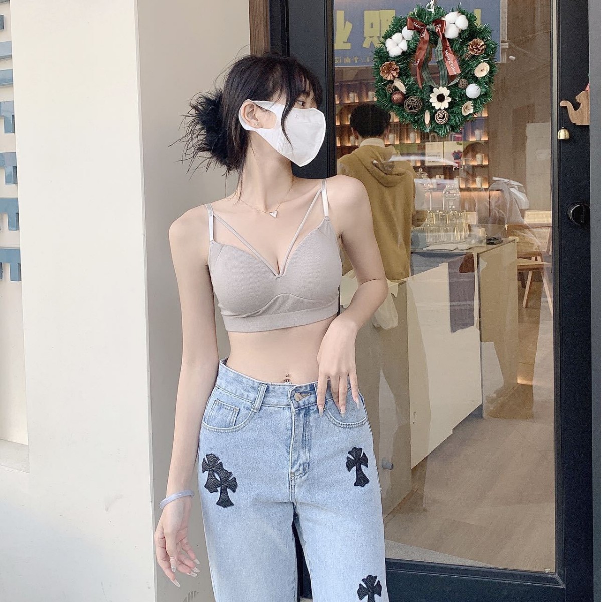 S15#果冻空气杯美背内衣双肩带辣妹无痕打底裹胸百搭交叉美背内衣