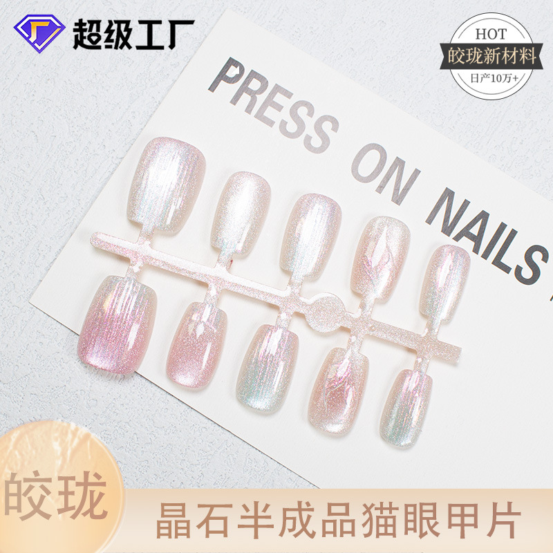 【皓珑】高級グラデーション色合わせ猫眼造形服装甲夏新商品白プレハブ製品