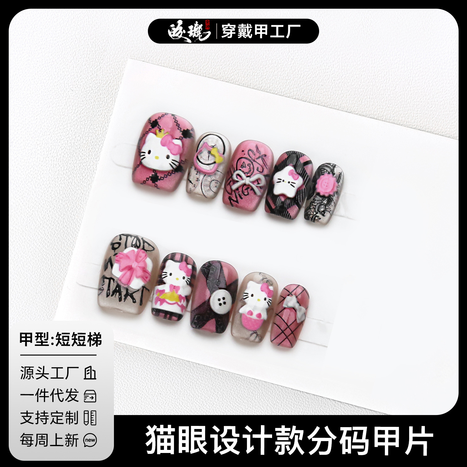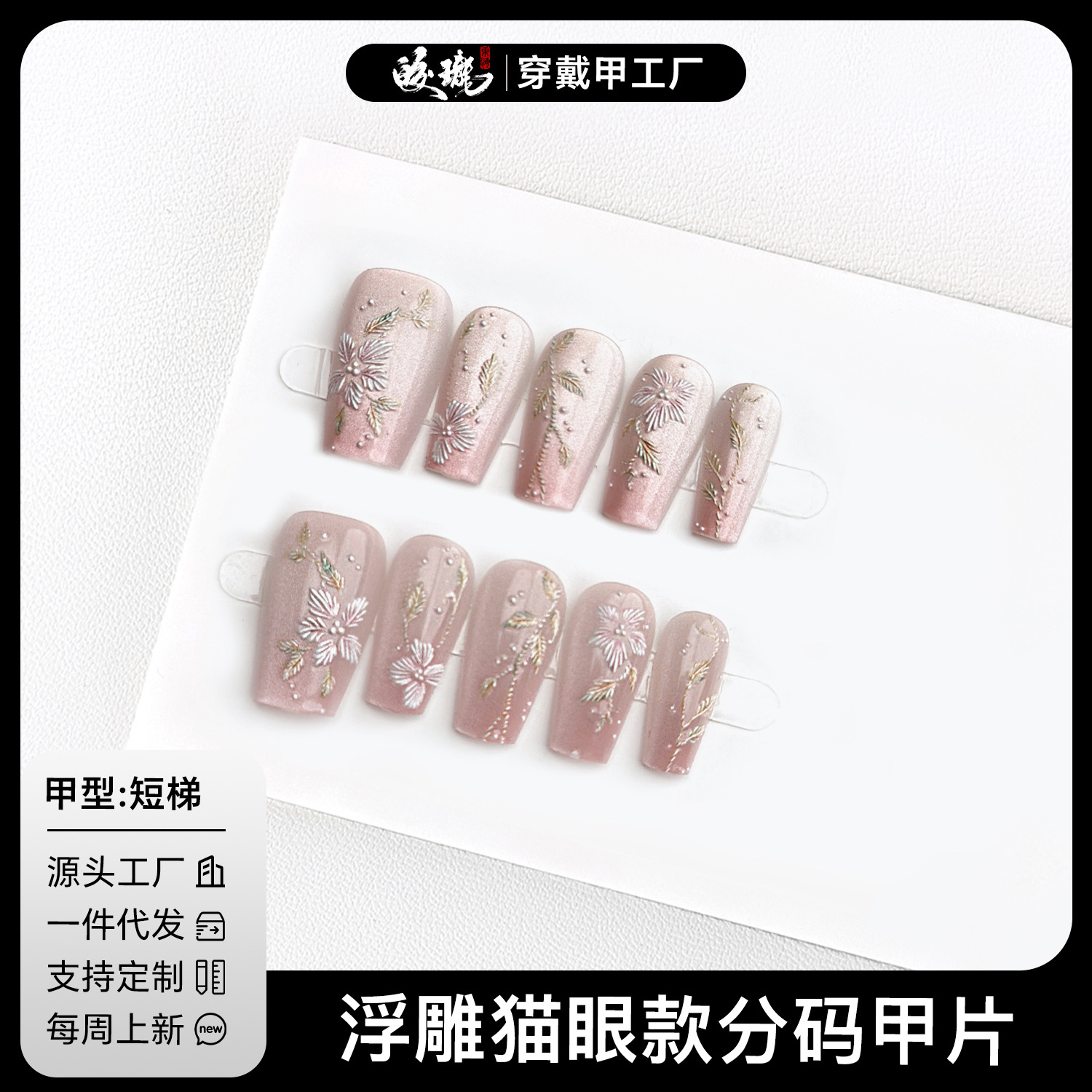 【皓珑】夏の完成品高級グラデーションレリーフ猫の目のデザインは甲の新しい優しいネイルアートの爪を着ている