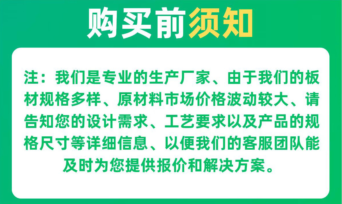 说明: 1:如果是要求特别精准的, 请和客服说明,因为切割都有厚度和损耗公差的(一般为负公差0.4mm),另外要求完全无划痕的请慎排,亚克力虽表面有保护膜,但是在板材出厂、切割、包装、运输等,难免会有磕磕碰碰,可能会有个别会有划痕现象,如不说明,我们都将当做默认接受。