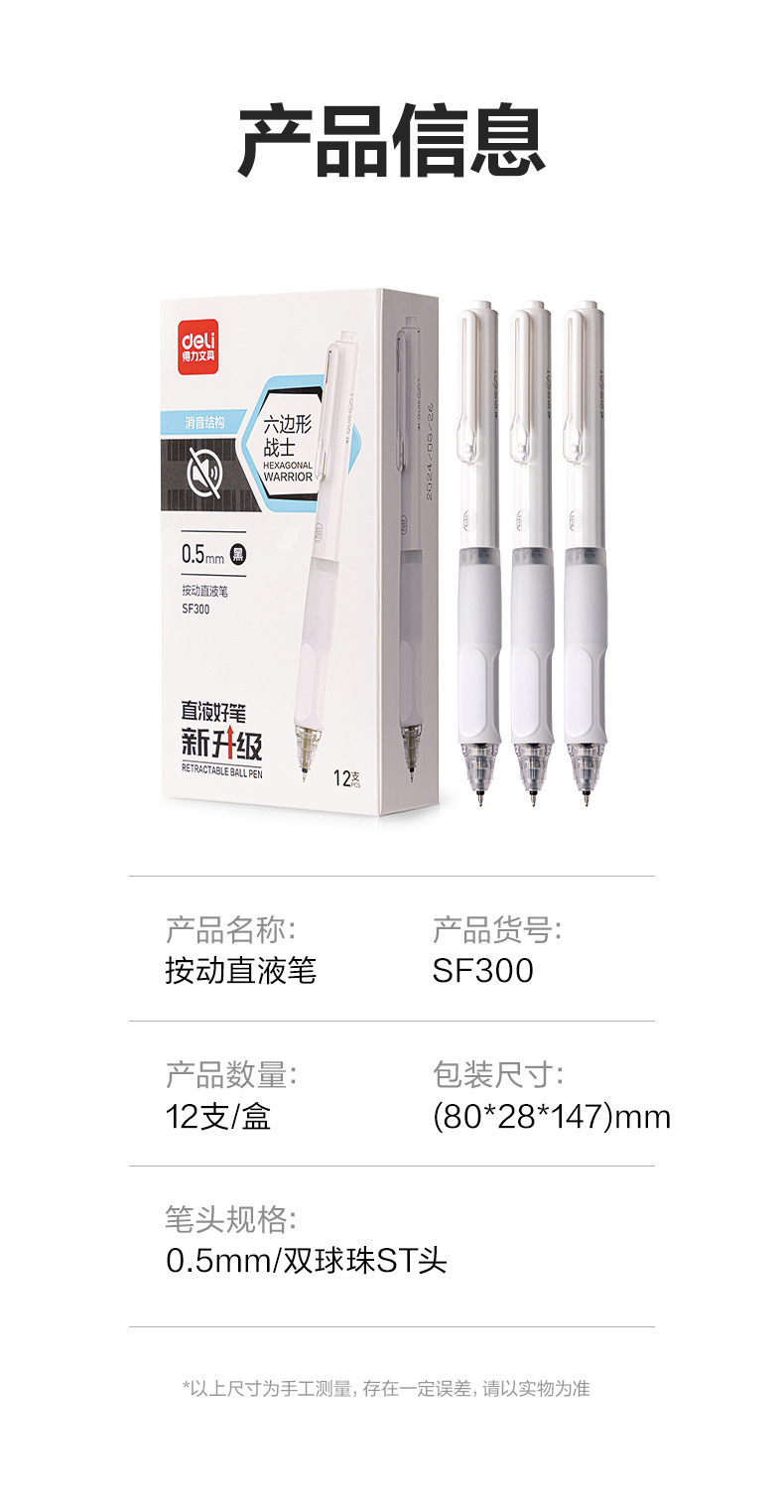 有力SF300六角形戦士全能直液ペン0.5mm双珠STペン学生静音押し黒ペン