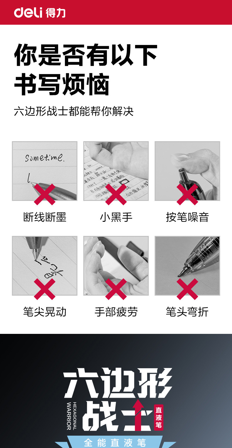 得力按动中性笔水笔学生用大容量黑色st速干六边形战士考试小分贝