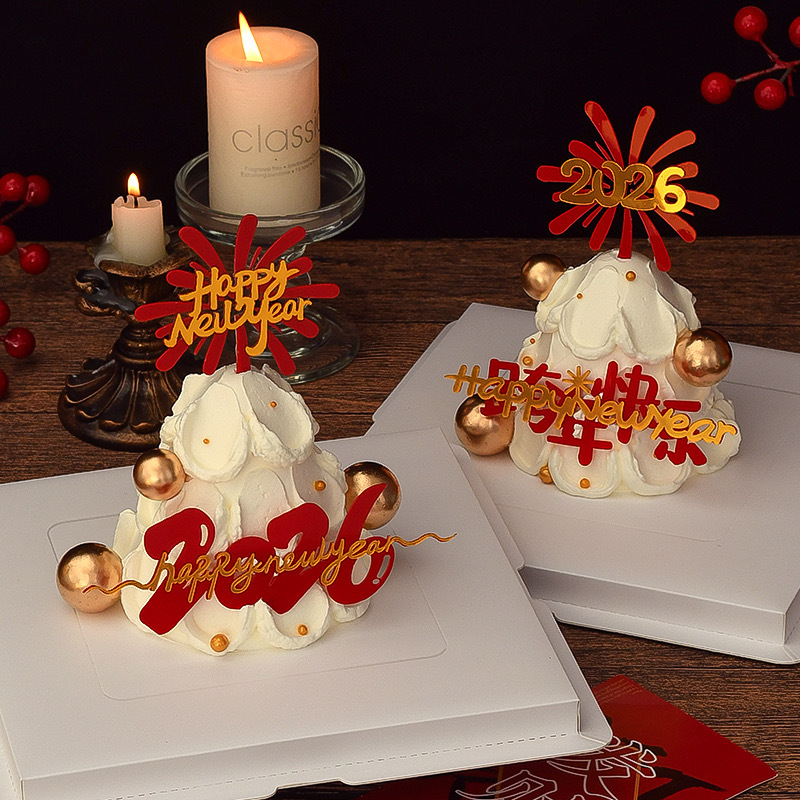 元旦马年跨年快乐蛋糕装饰插牌亚克力礼花2026新年许愿树烘焙装扮