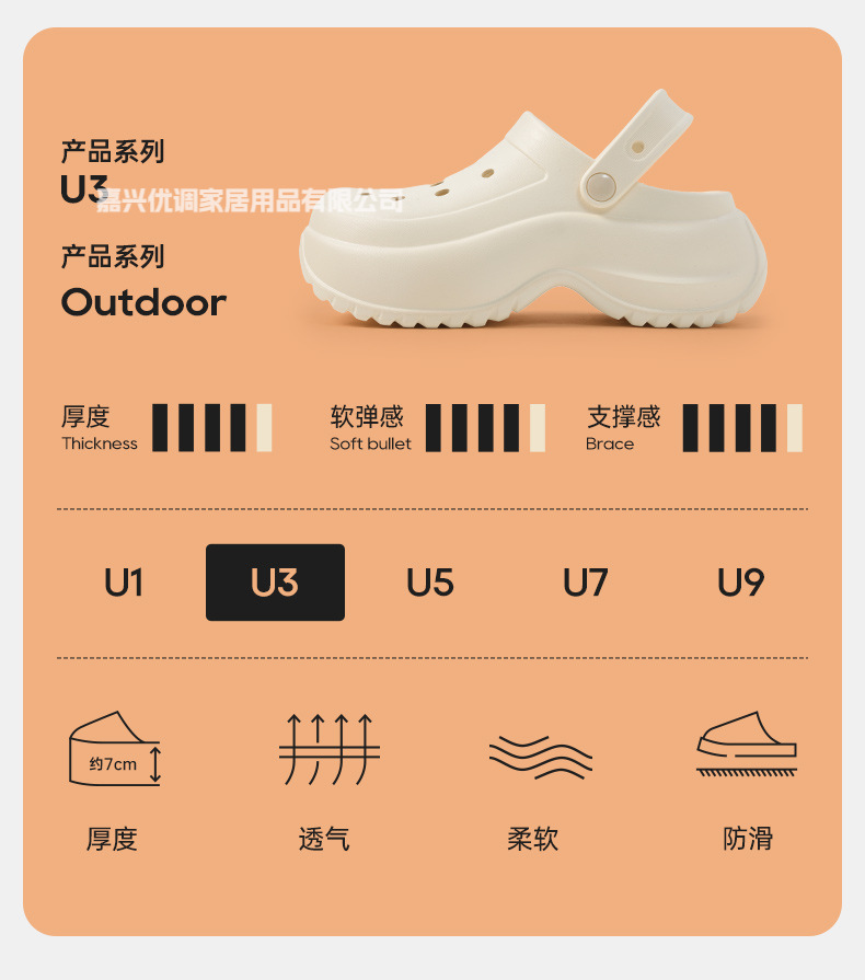 優調洞洞シューズ2025新作厚底EVA履き心地抜群サンダルレディース外履き身長アップ滑り止めスリッパビーチサンダル
