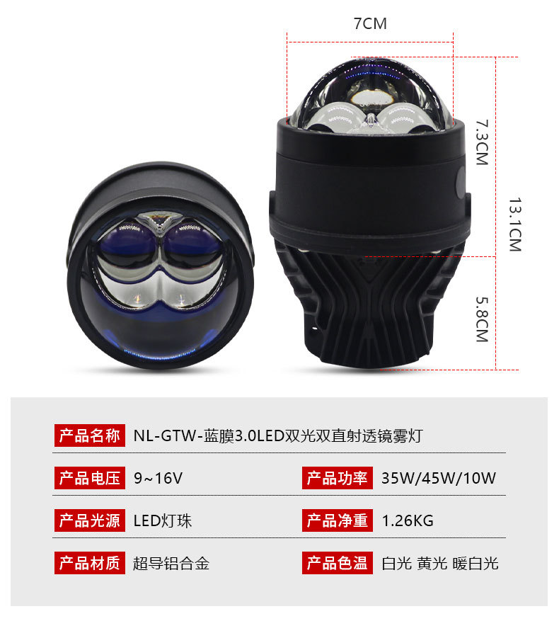 適用通用自動車法雷奥3インチダブル直射LEDレーザー青膜フォグレンズ遠近一体遠光砲