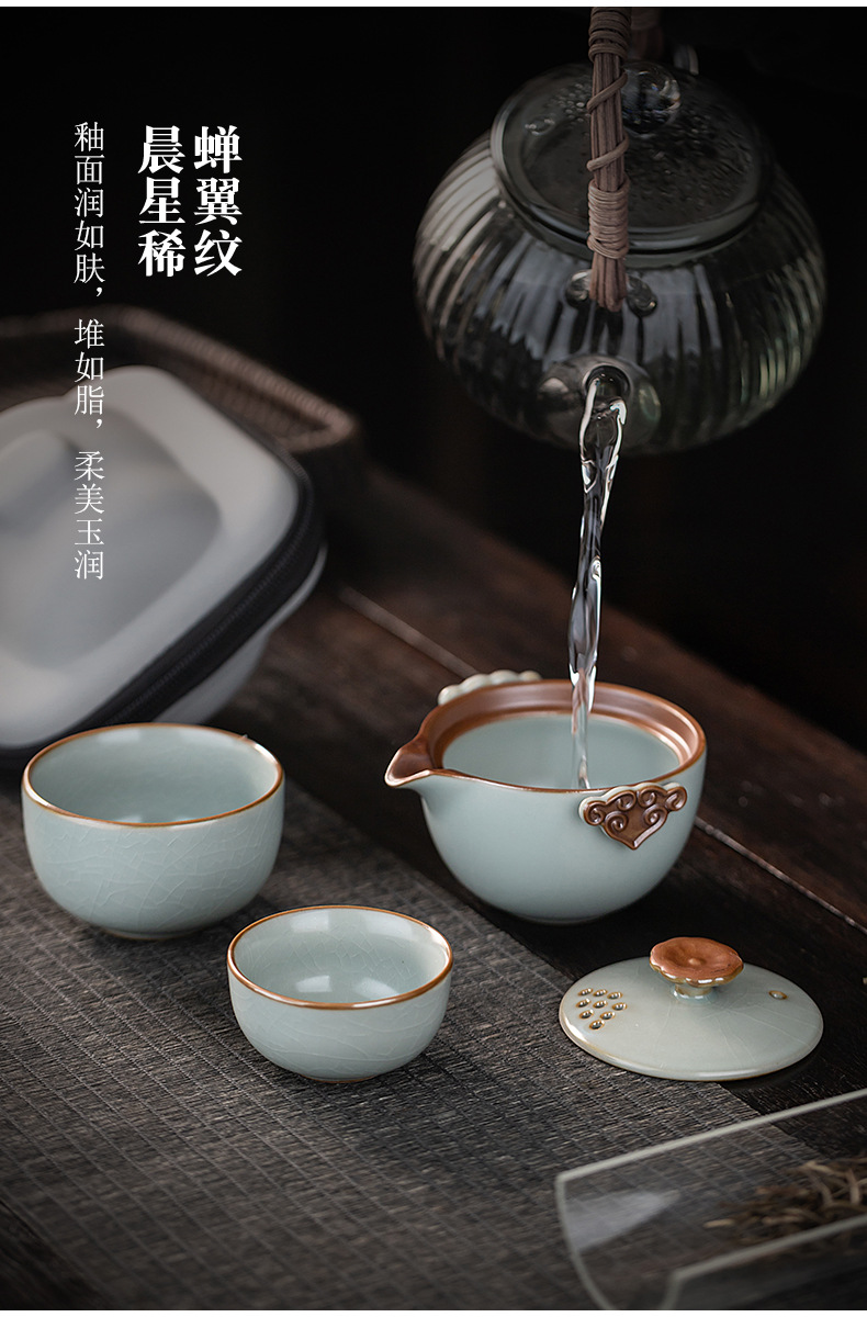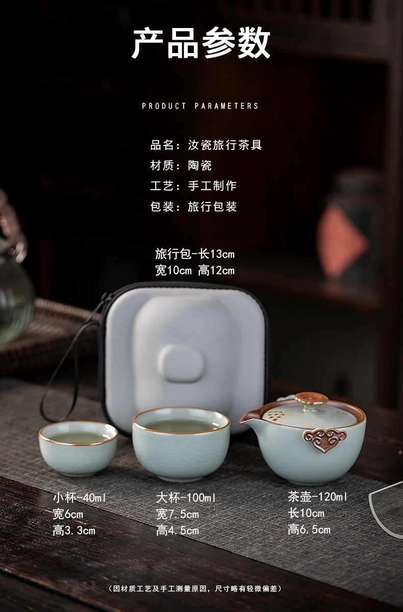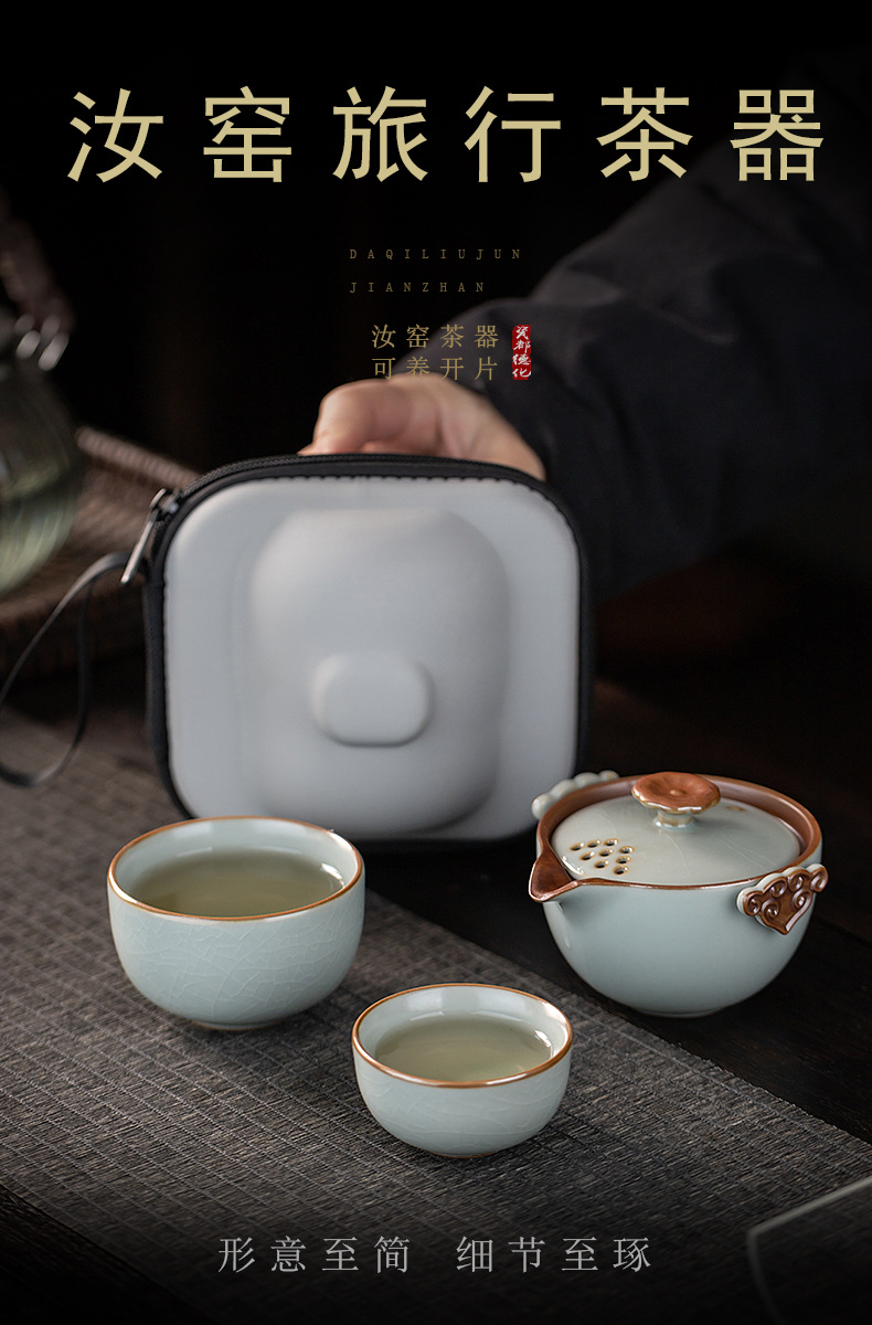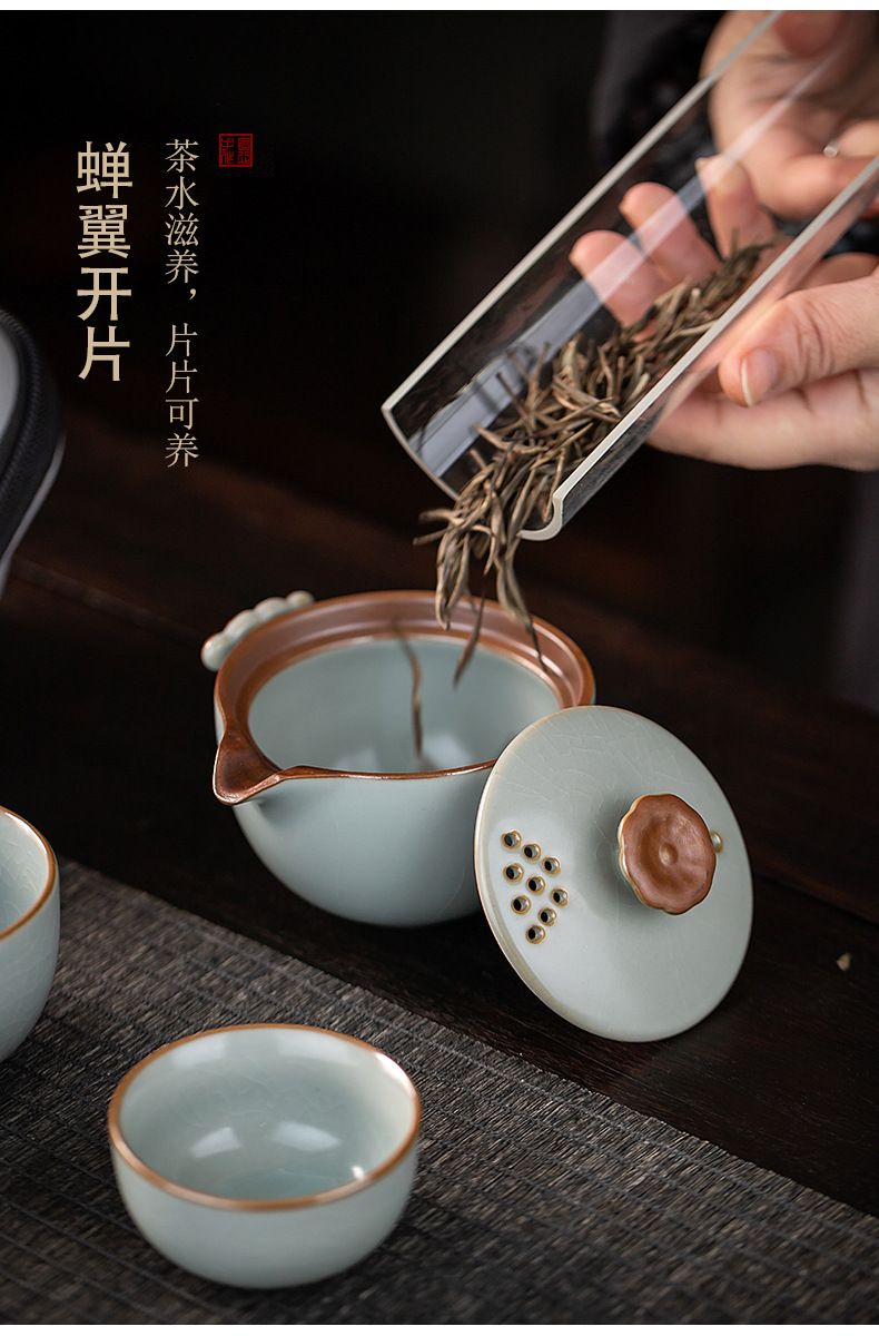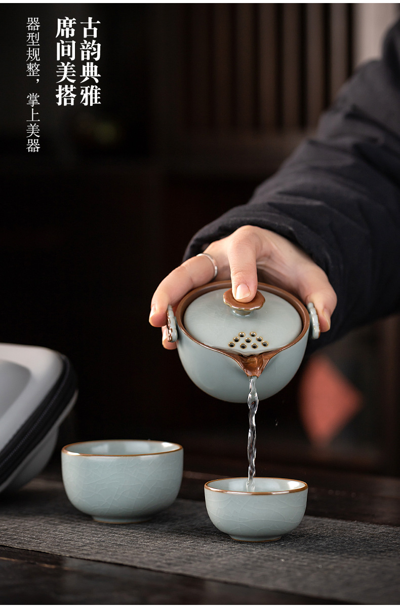 汝窑手抓壶盖碗茶杯旅行茶具套装户外陶瓷快客泡茶分离三才不烫手