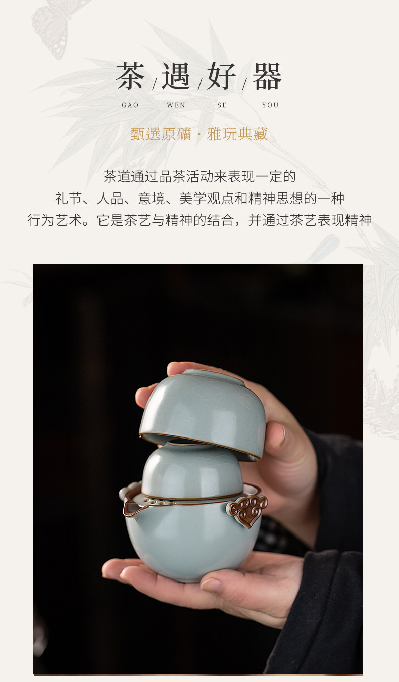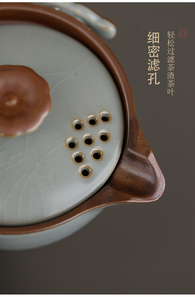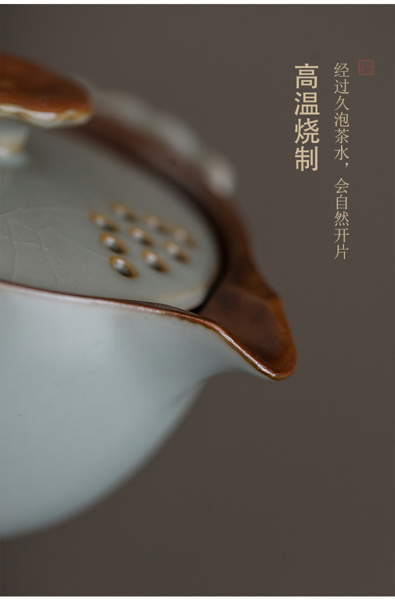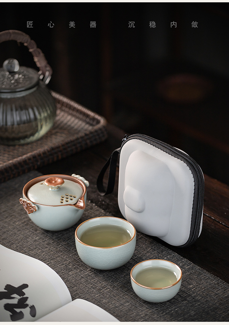 汝窑手抓壶盖碗茶杯旅行茶具套装户外陶瓷快客泡茶分离三才不烫手