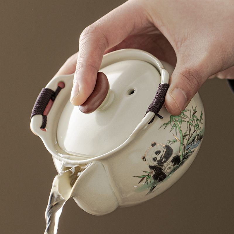 米黄汝窯手掴み壺茶蓋碗茶杯単一家庭用高級防熱茶碗一人で小壺茶具を飲む。
