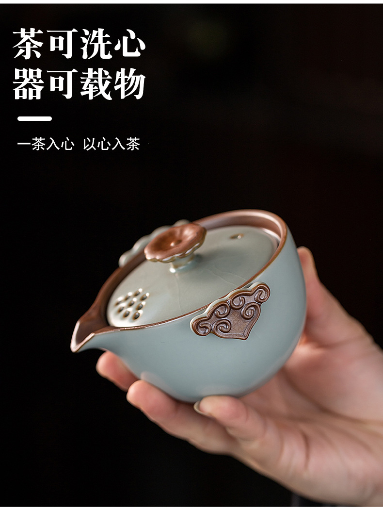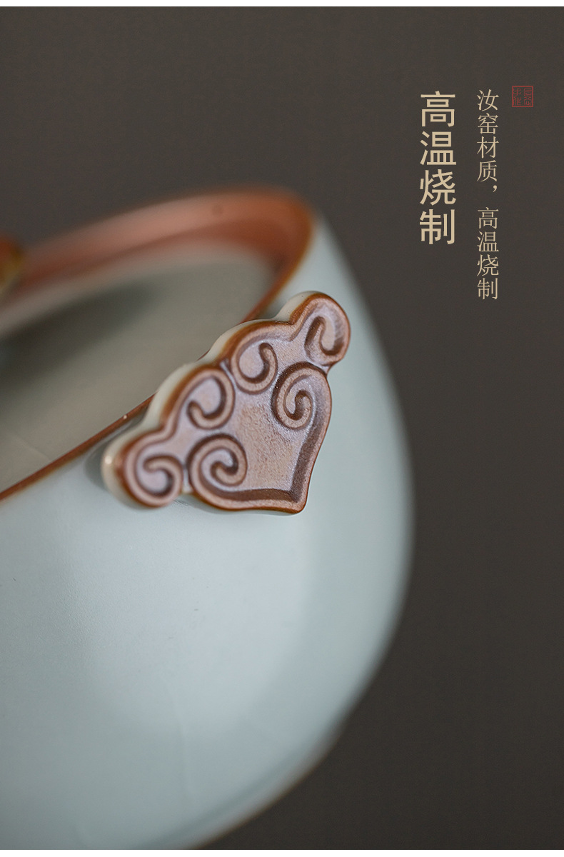汝窯手掴みポット蓋ボウルティーカップハイエンド大型火傷防止家庭用カンフーティーセットシングルポットティーボウル蓋付き