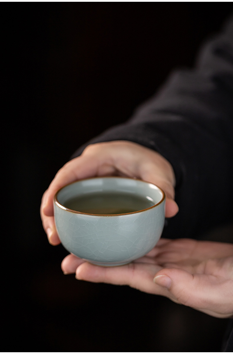 天青汝窯手掴み壺単壺防熱蓋碗茶杯単高級茶碗陶磁器家庭用工夫茶器
