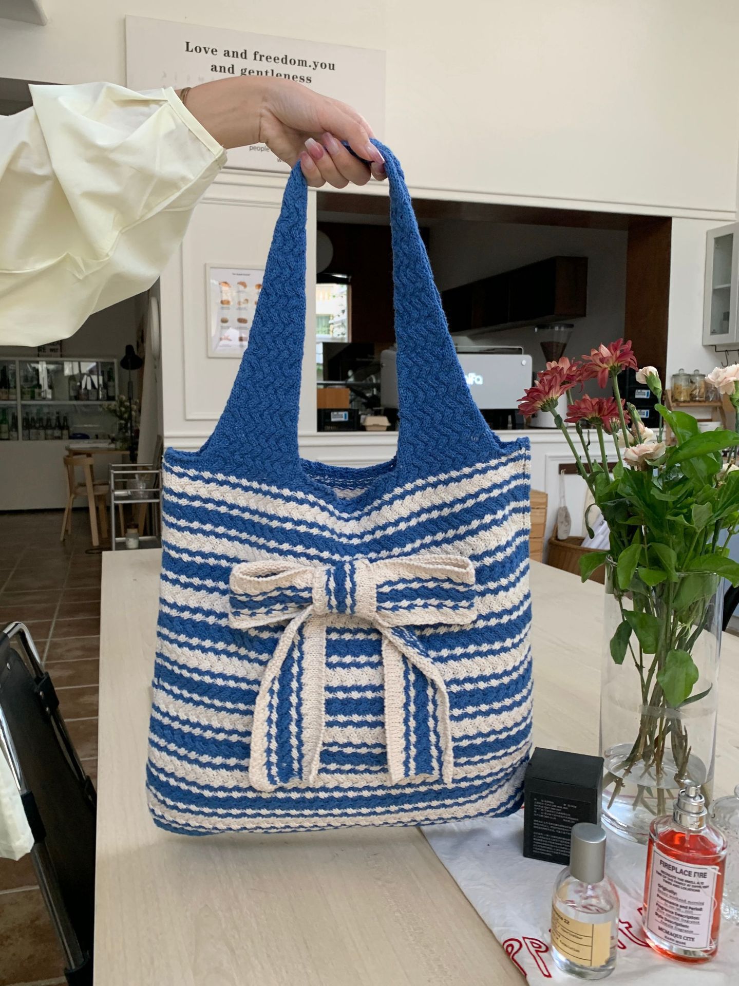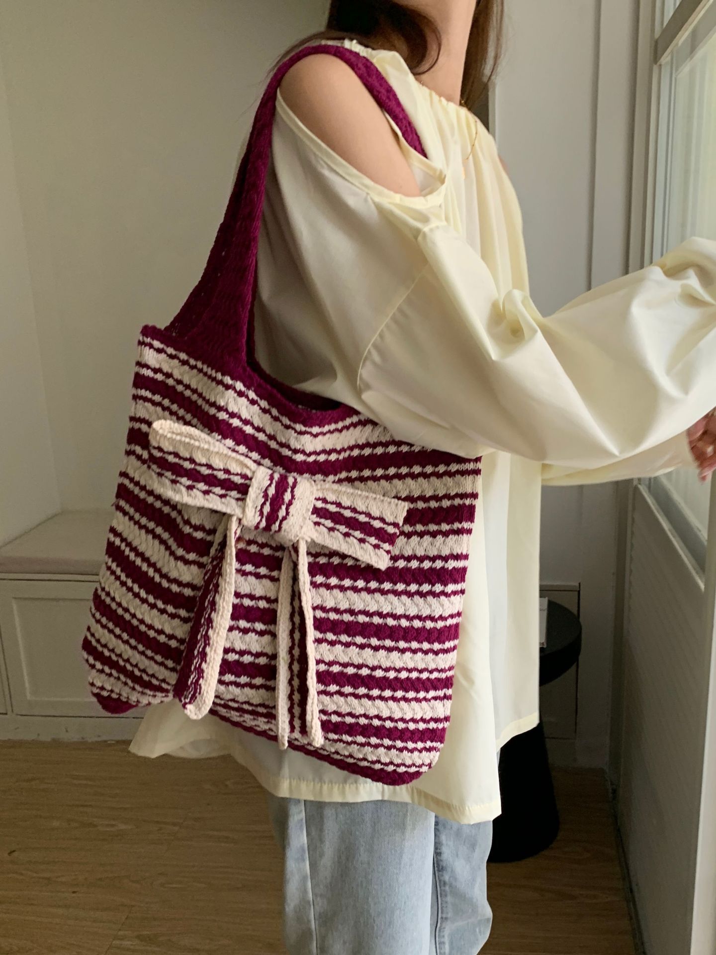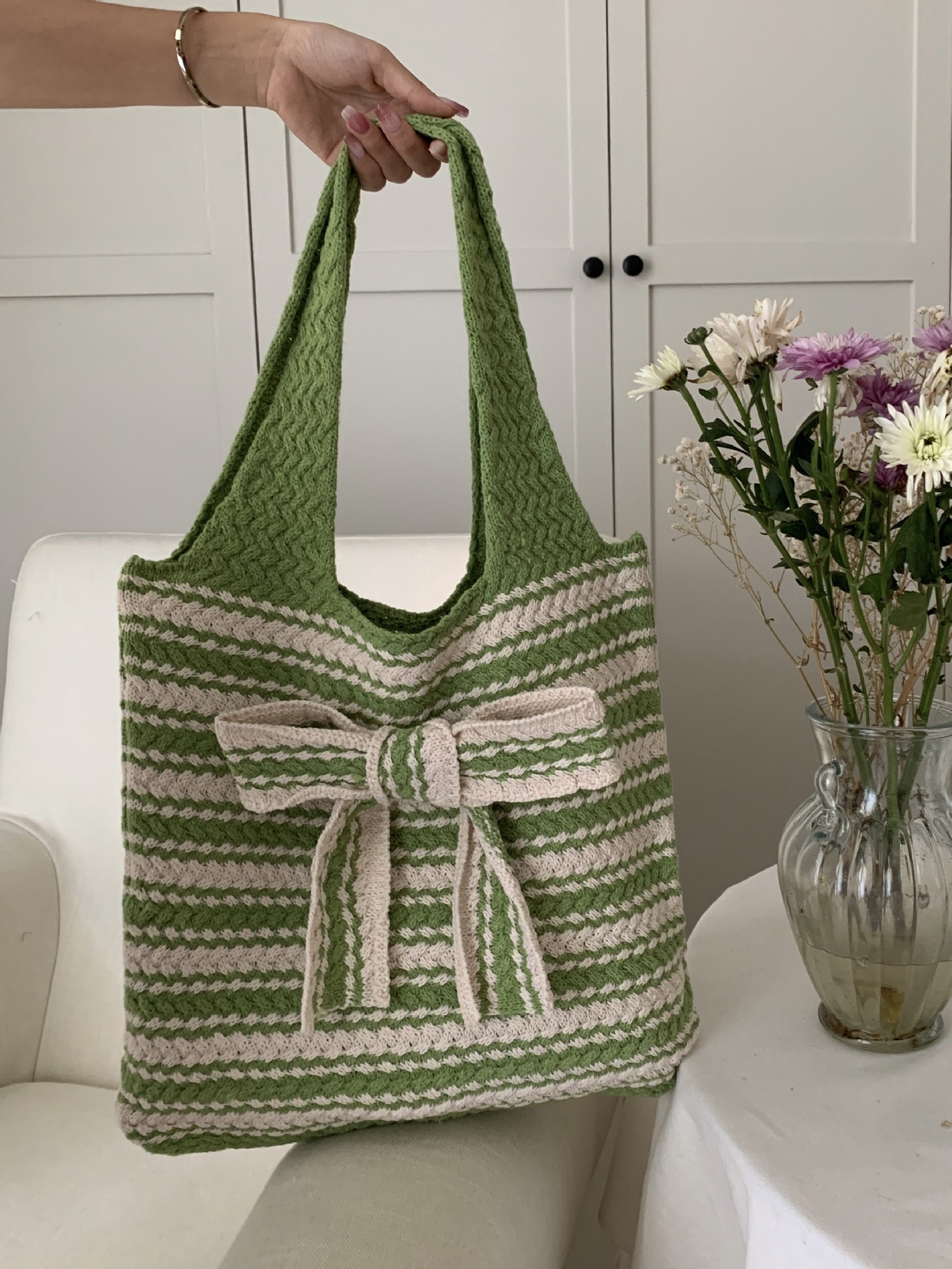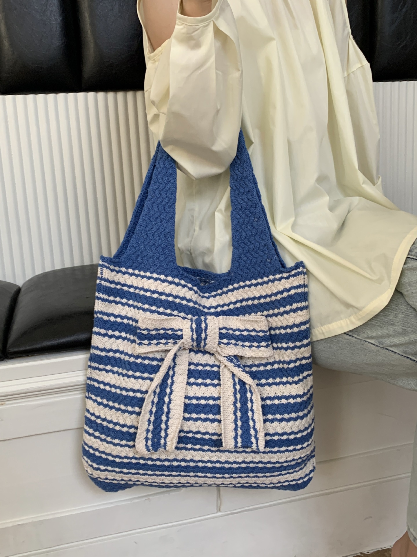 新商品のクロスボーダーのニットバッグには、高級感のある大容量のトートバッグがあります。