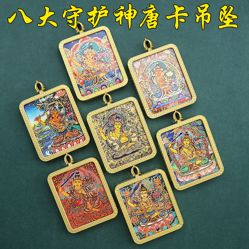 チベット両面立体タンカ手描き金八守護聖人黄色の富の神五帝色保持電気メッキタンカネックレス