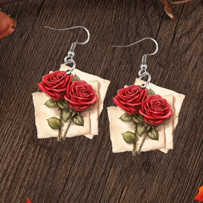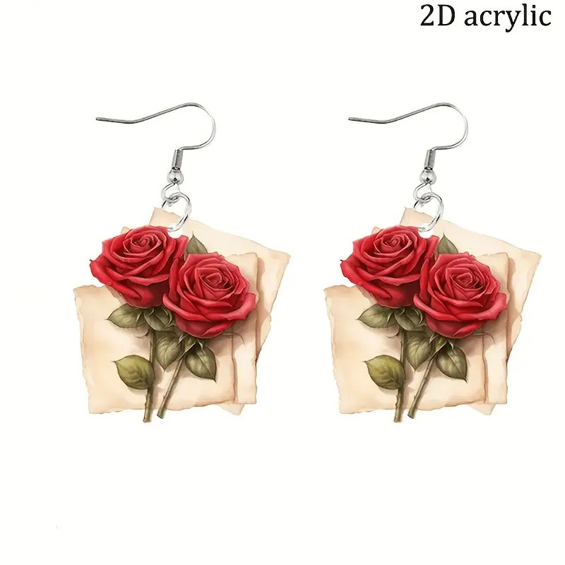 クロスボーダー热い贩売手纸ローズ2Dアクリルイヤリングレトロ祭りパーティーロマンチックバレンタインレディースギフト