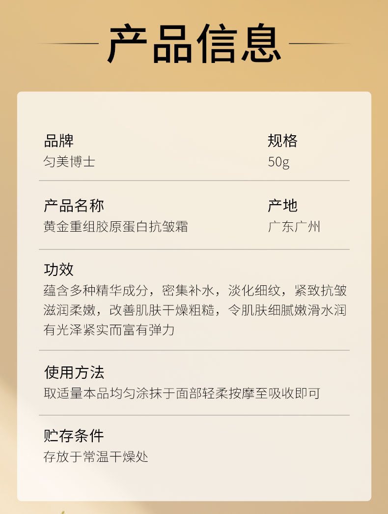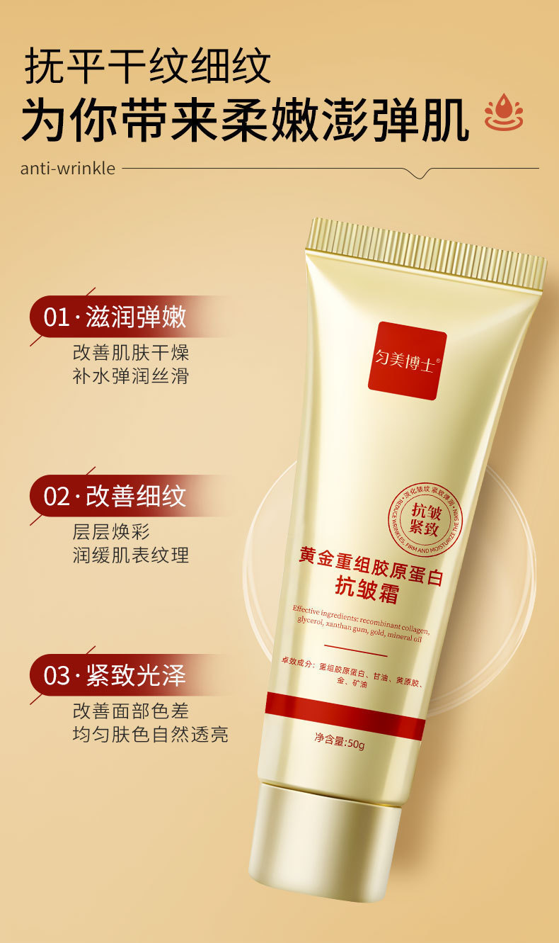 均美博士黄金再編成コラーゲン抗しわクリームクリームは、潤いと光沢のあるスポットを緩和します。