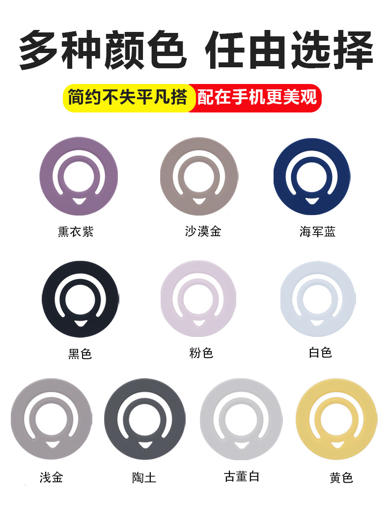 液态硅胶双面磁吸手机指环扣多功能磁力贴片手机支架背粘贴引磁环