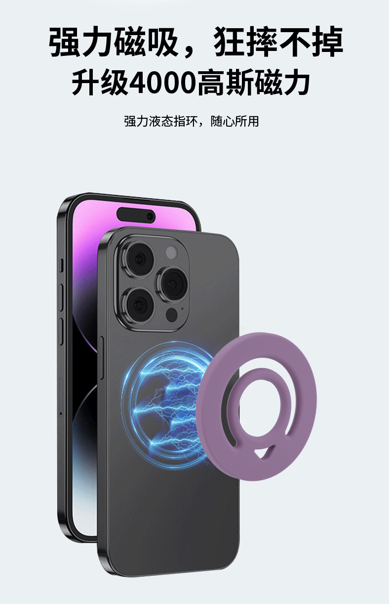 跨境magsafe便携液态硅胶双面磁吸指环扣通用手机懒人磁吸支架