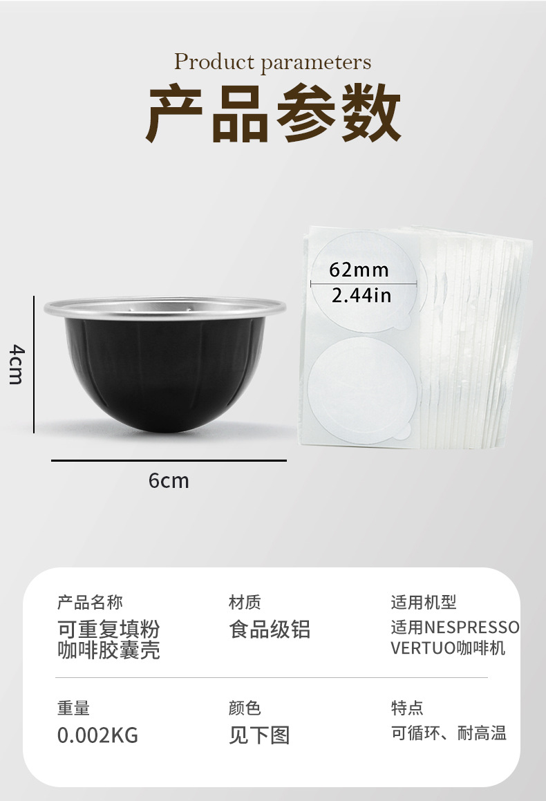 ネスレvertuoシリーズカプセルシェルネスプレッソコーヒーメーカー230ml再利用可能diyアルミ箔空シェル
