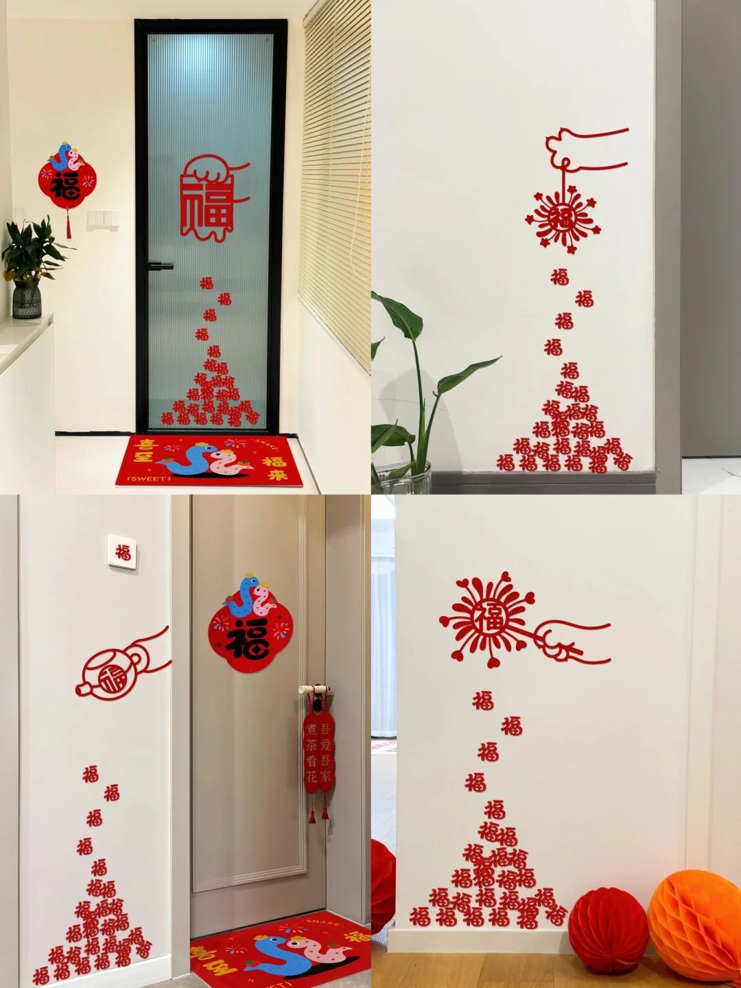 2025創意フェルト福字ステッカー蛇年新年装飾可愛いアニメ新作入戸ステッカー