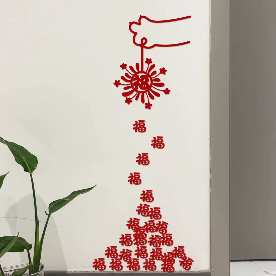 2026马年新款烟花福字贴新年装饰布置门贴入户门卧室衣柜客厅墙贴