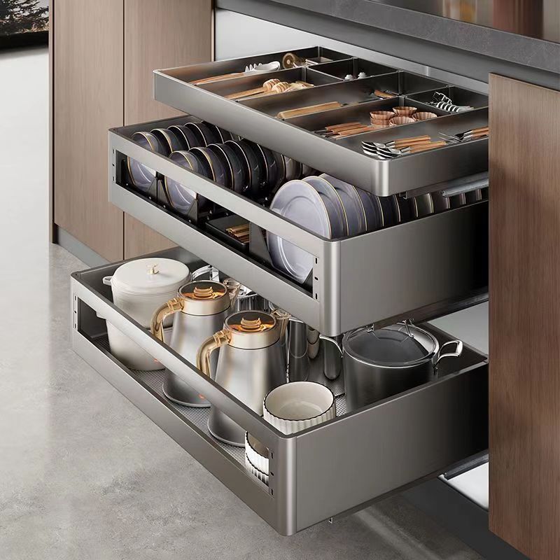 多層バスケットキッチン二重食器棚304ステンレス引き出し式内蔵食器棚収納皿バスケットその他