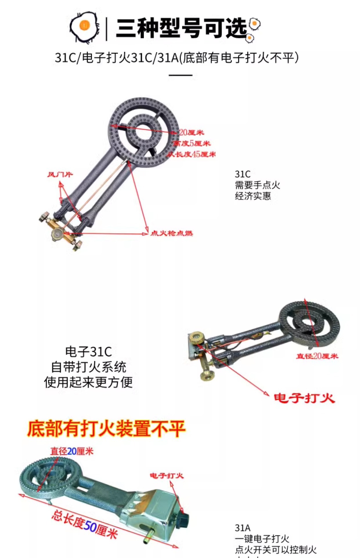 仕様とモデル 31Cシングルコンロ(長さ45 幅20 高さ1),31c液化ガスパッケージ,単管24ヘッド,エレクトロニクス 31A,電子31Aパッケージ,電子点火 31C 長さ45 幅20 高さ 4cm,電子点火 31C パッケージ