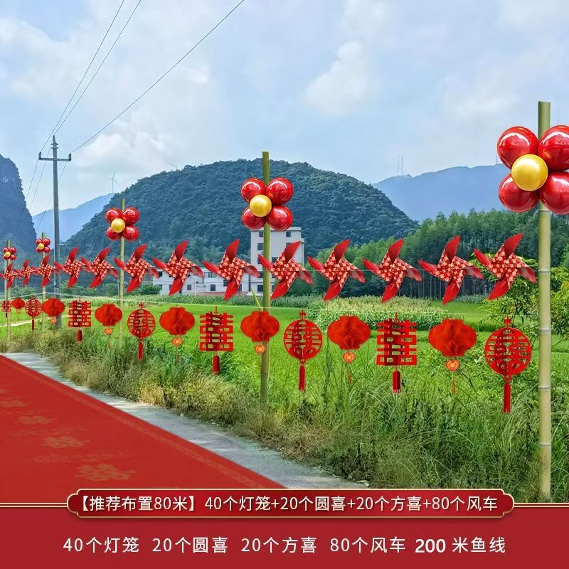 カラフルな旗結婚式の道路シーンのレイアウト結婚式の装飾ランタン田舎の庭結婚式の外装用品風車屋外