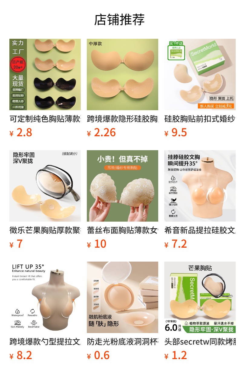 国境を越えて人気の目に見えないシリコン胸パッド、厚手の露出防止胸パッド、マンゴーカップ、小胸を大きく見せるプッシュアップ胸パッド、卸売