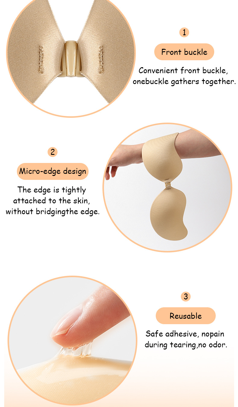 在庫ありの粘着式インビジブルブラ、シームレスな胸パッチ、厚いカスタマイズ可能なOEM OEMパッチ、小さな胸を大きく見せるシリコン胸パッチ