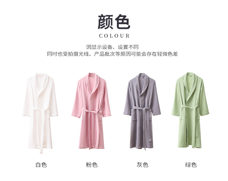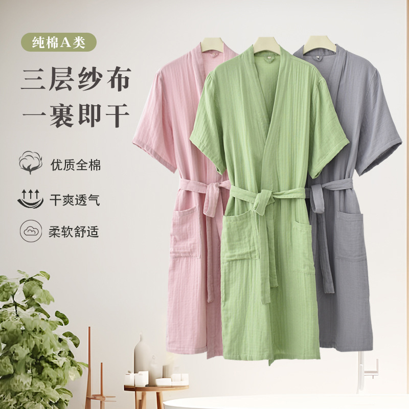 四季純綿三層ガーゼ浴衣ホームウェアパジャマ成人女性カップル入浴綿吸水