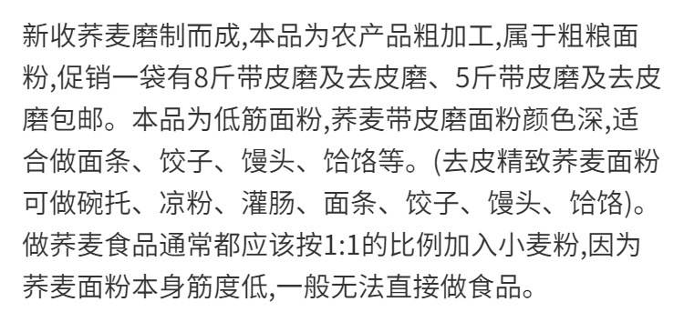 荞麦面粉5斤荞麦面正宗荞麦粉全麦粗粮黑全麦粉馒头包子家用杂粮