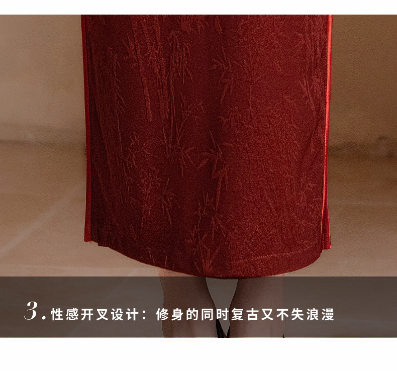 ワインレッドのチャイナドレスの新モデル2024秋冬のベルベットは、新中国式のベストスーツを厚くして、若いモデルを改良した