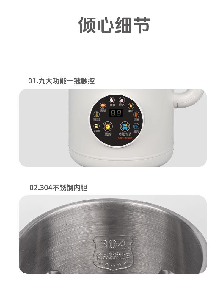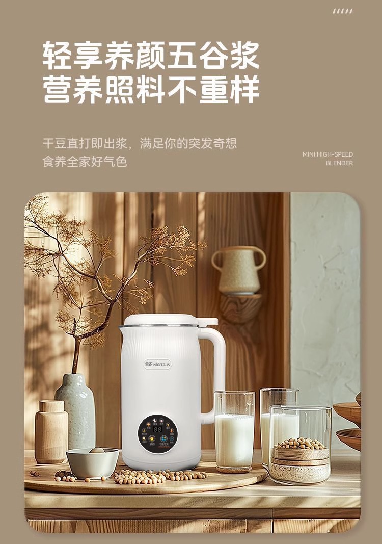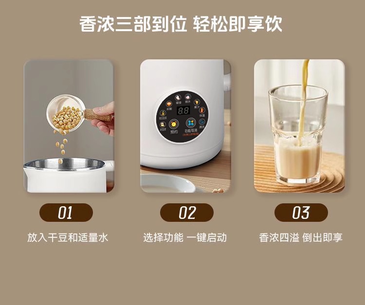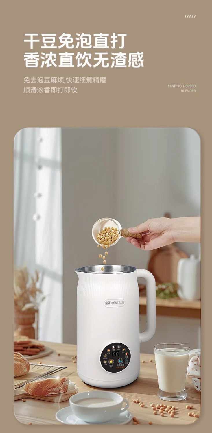 新型豆乳製造機家庭用多機能全自動無煮濾過防糊底ステンレスミニ破壁豆乳製造機