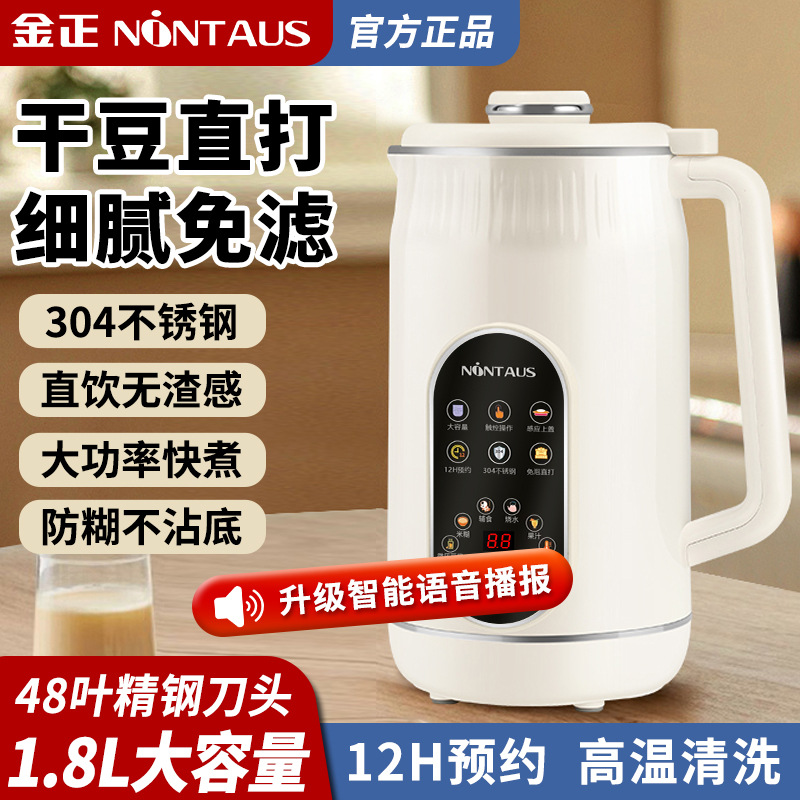 NINTAUS金正新款语音1800ML豆浆机48叶刀头家用破壁机全自动免滤